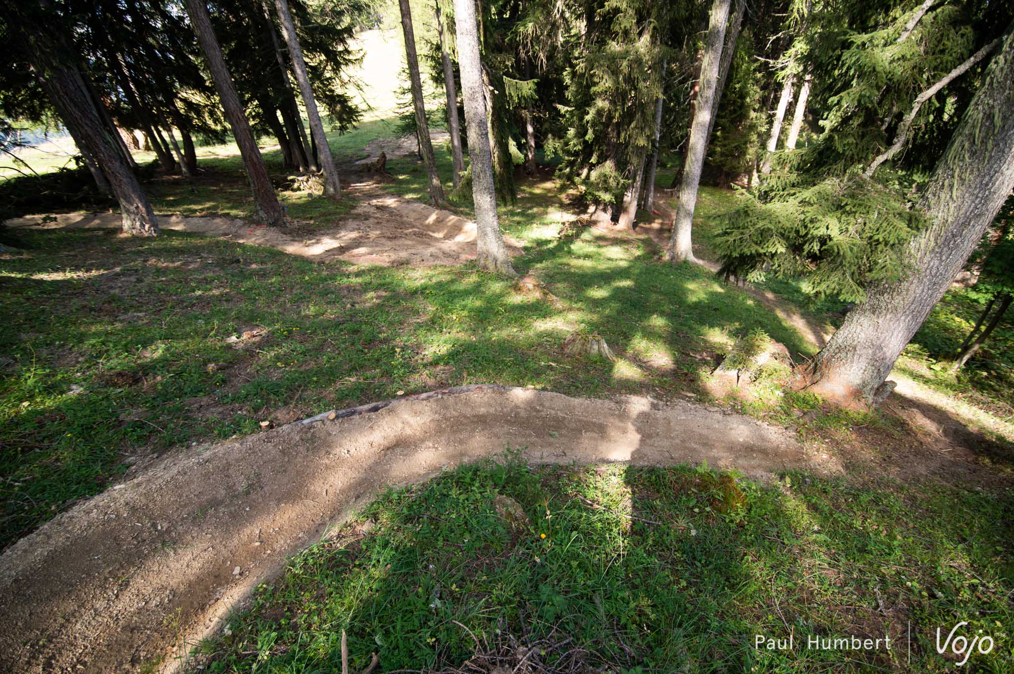On se lance dans la roue de Max et Séverin sur les tracés verts et bleus. On retrouve très vite les premiers virages relevés encore bien mous mais arrondis juste ce qu’il faut. Les transitions entre les descentes et les montées sont faciles et on se surprend à mettre du rythme en poussant sur notre vélo.
