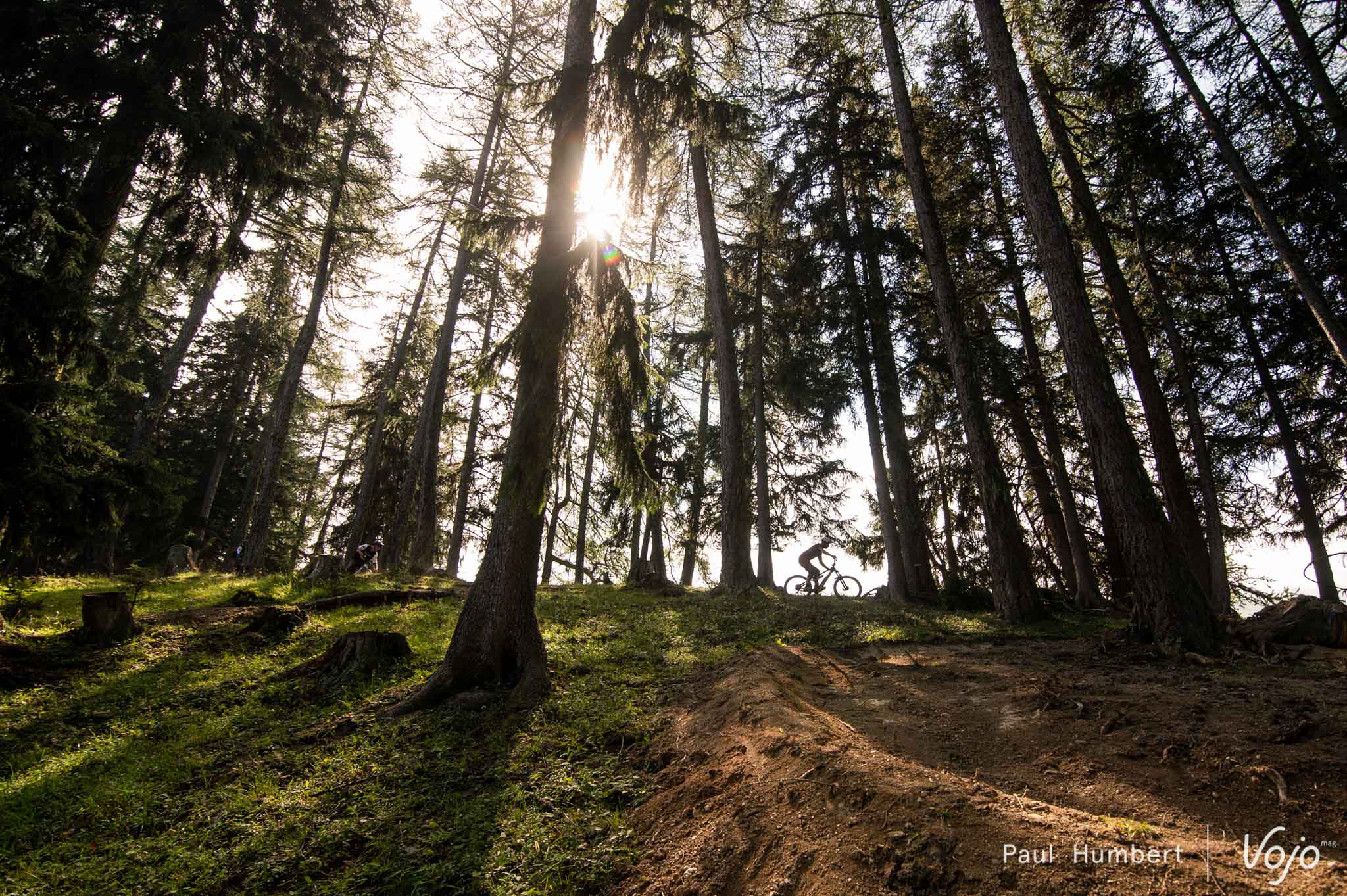 Certains chemins existants ne sont d’ailleurs pas loin et on plonge dans un superbe sentier qui relie l’E-Spot de Montalbert au restaurant d’altitude du Foreperet où un point de recharge des batteries attend les VTTistes. De beaux passages dans des racines et de la terre bien meuble seront parfaits pour vous ouvrir l’appétit.