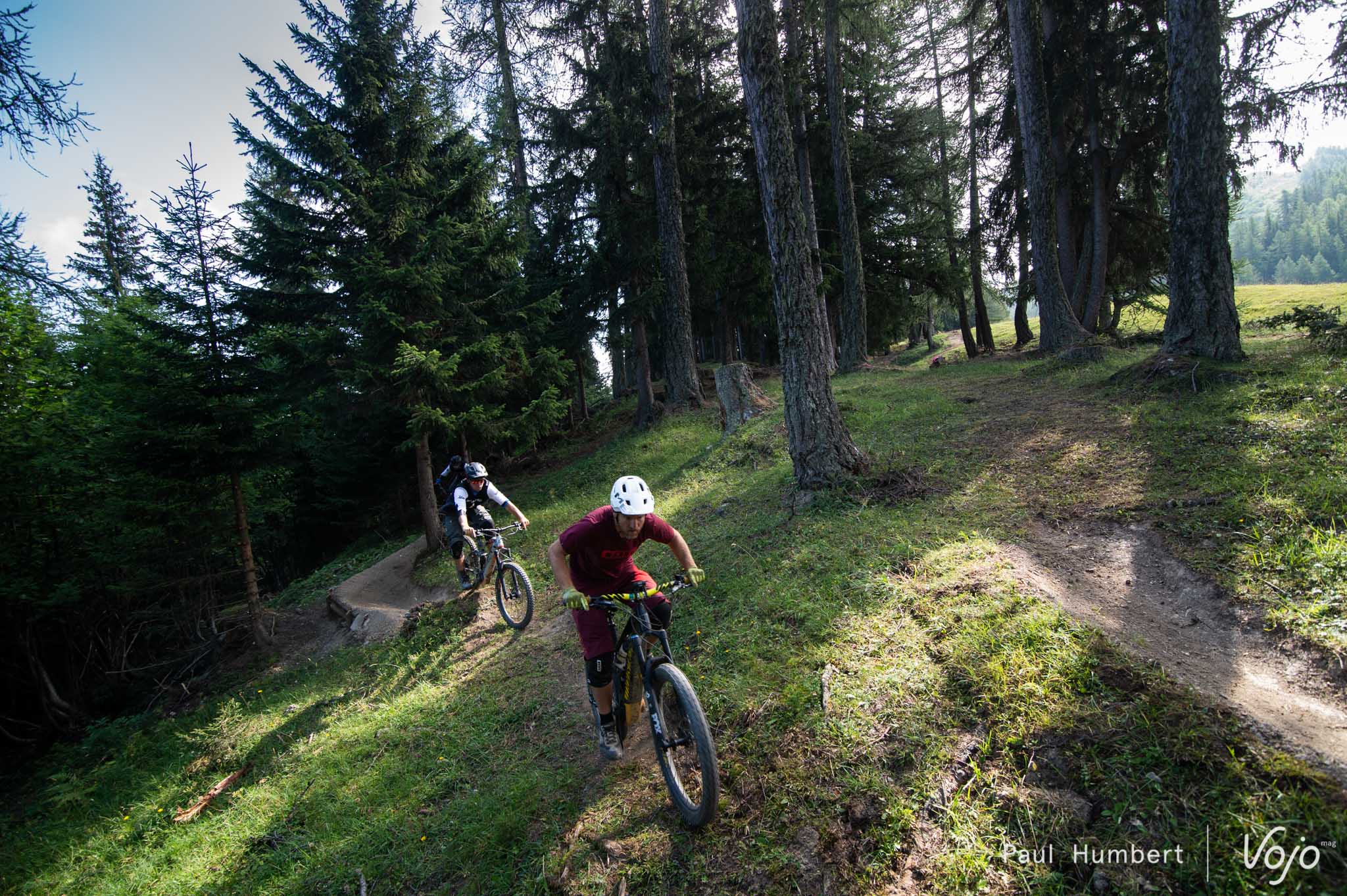 Certains chemins existants ne sont d’ailleurs pas loin et on plonge dans un superbe sentier qui relie l’E-Spot de Montalbert au restaurant d’altitude du Foreperet où un point de recharge des batteries attend les VTTistes. De beaux passages dans des racines et de la terre bien meuble seront parfaits pour vous ouvrir l’appétit.
