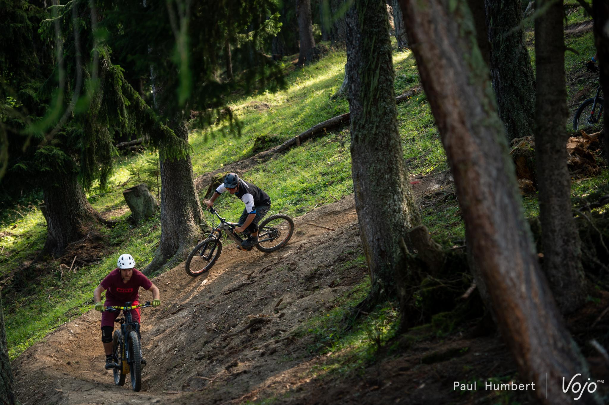 On se lance dans la roue de Max et Séverin sur les tracés verts et bleus. On retrouve très vite les premiers virages relevés encore bien mous mais arrondis juste ce qu’il faut. Les transitions entre les descentes et les montées sont faciles et on se surprend à mettre du rythme en poussant sur notre vélo.