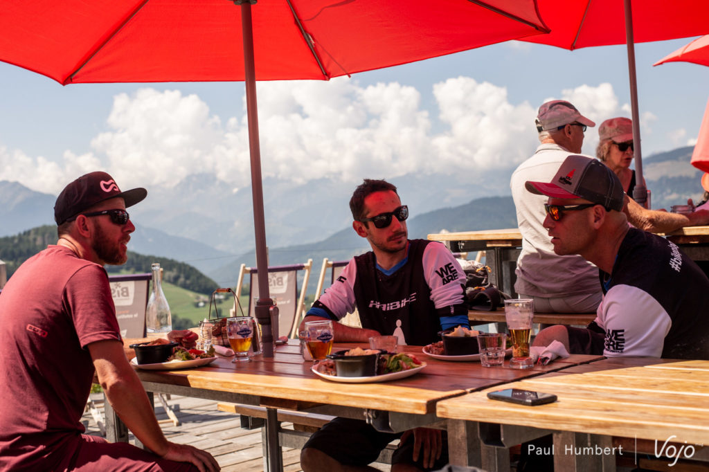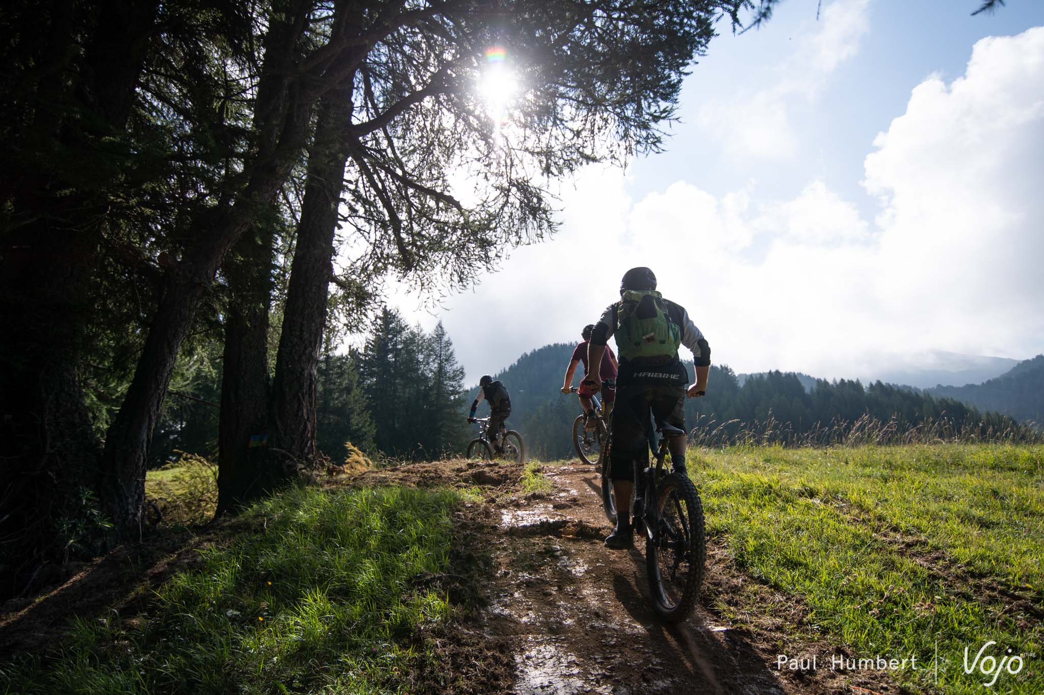 Nous sommes également accompagnés d’Alex, un des bike-patrols de La Plagne qu’on reconnaît à leurs maillots et à leurs vélos, des Haibike Xduro Nduro 8.0 que nous avons pris en main sur place : https://dev.vojomag.com/prise-en-main-haibike-xduro-nduro-8-0-decouverte-a-la-plagne/