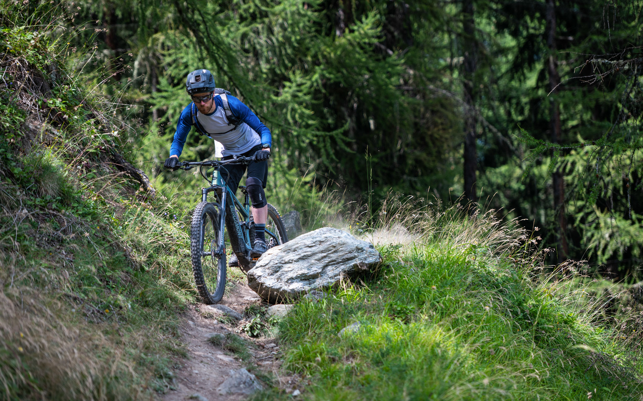 La suite, c’est un tapis magique. Un enchaînement d’épingles au rayon parfait, tellement ouvertes qu’on ne sait pas si on doit parler de virages ou d’épingles, sur une couche épaisse d’épines de pins et de mélèzes qui donne la sensation de flotter et de surfer quand on prend un peu de vitesse. Et croyez-le ou non mais surfer sur deux roues, c’est bien plus facile que sur une planche !
