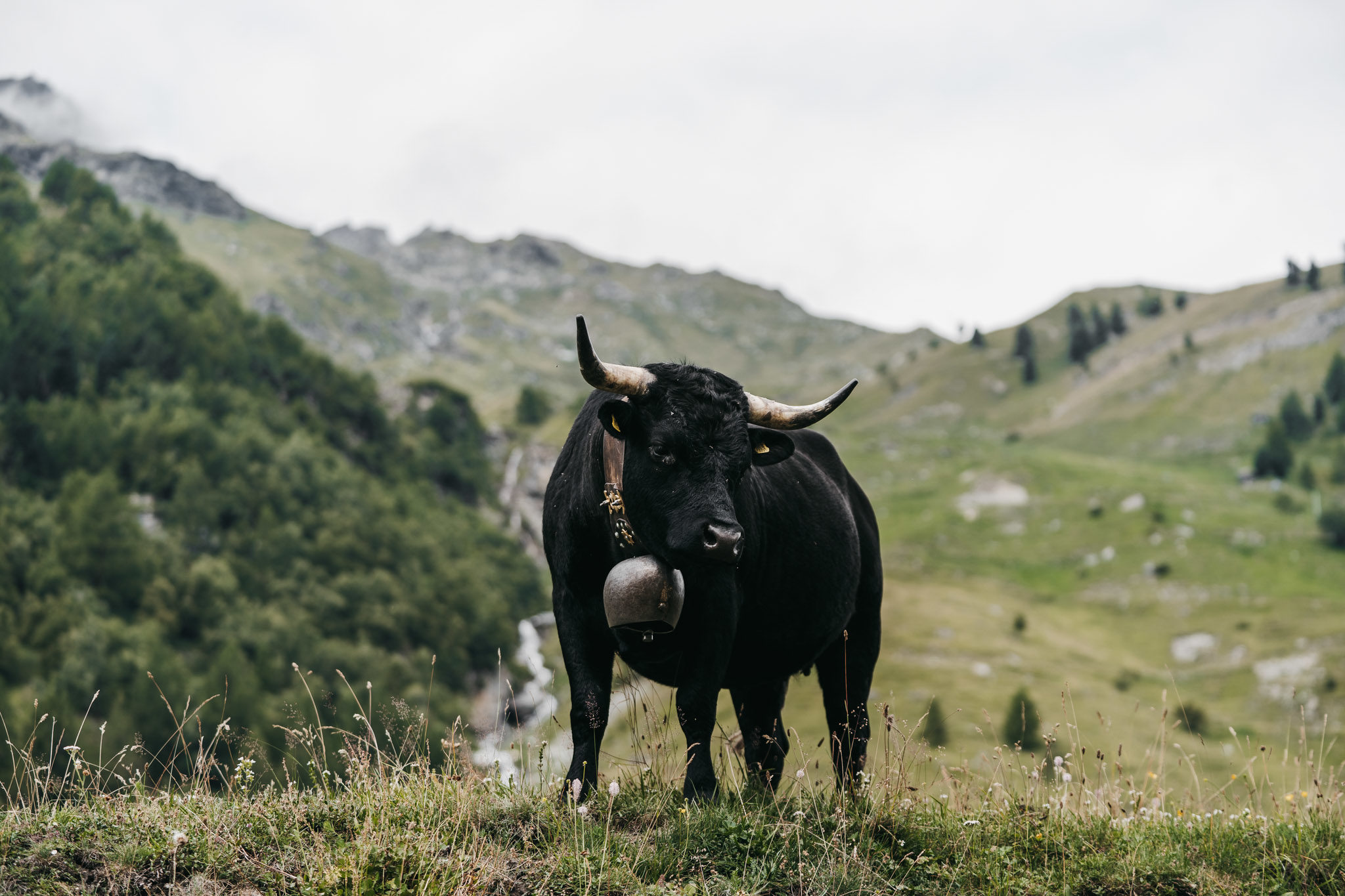 Trapues, musclées, parées d’une robe très foncée quand ce n’est pas complètement noire, les Hérens sont des vaches particulièrement imposantes. A la fois laitières et à viande, elles sont connues dans le folklore pour leurs combats de reines qui animaient chaque année (et animent encore, même s’ils ont perdu de leur importance) les montées à l’alpage. Un tempérament belliqueux qui a de quoi impressionner, mais il n’y a pas de craintes à avoir car une fois la « matriarche » du troupeau désignée, elles se montrent généralement bien plus calmes et dociles, notamment avec les humains.