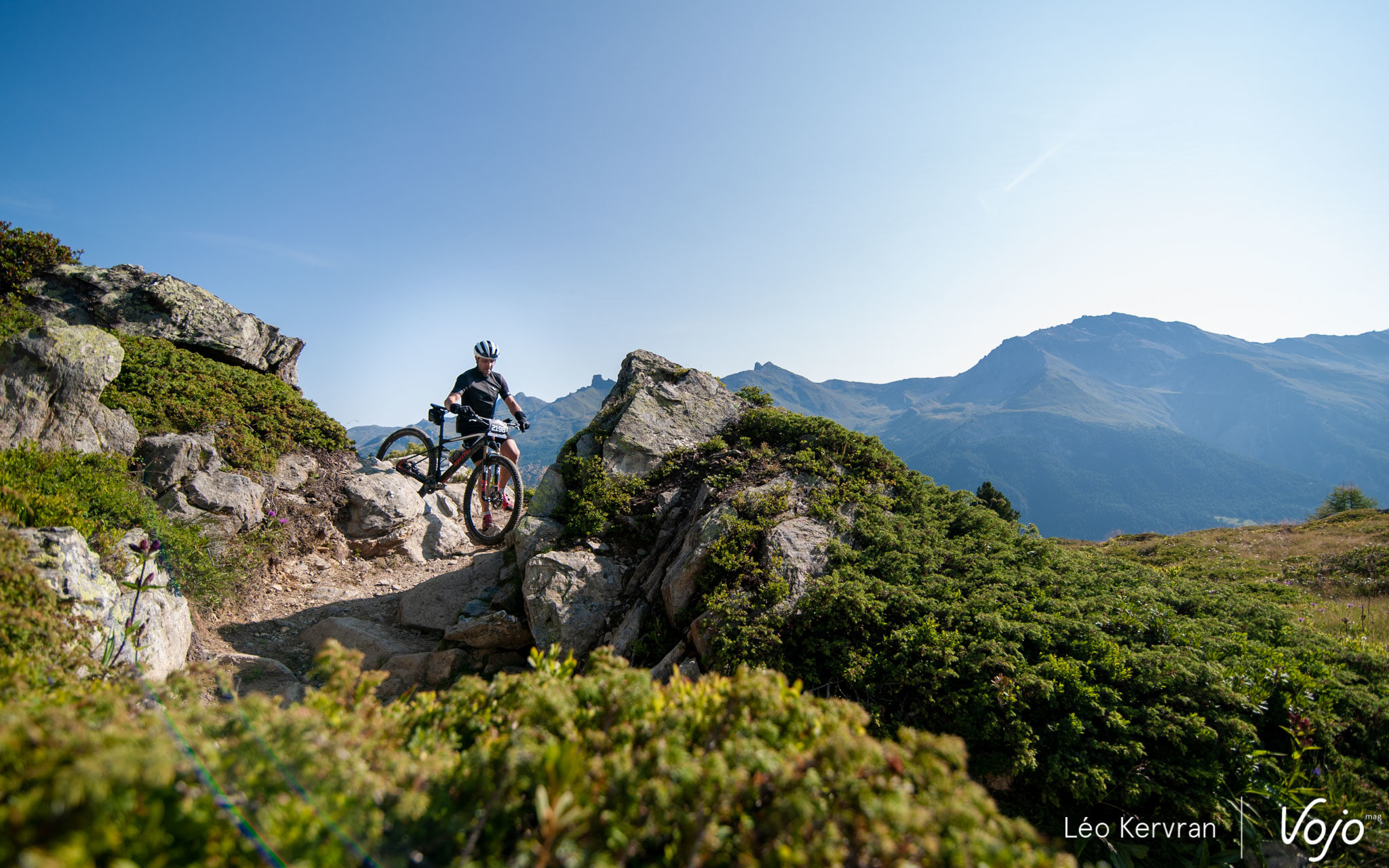 Passage redouté des pilotes, qui l’abordent parfois bien entamés après avoir dépassé le cap de la mi-course, ce joli petit sentier à flanc de montagne fait en revanche le bonheur des photographes. La faute en incombe aux cailloux et rochers omniprésents sur cette traversée, à l’origine de beaux passages techniques sur fond de sommets alpins.
