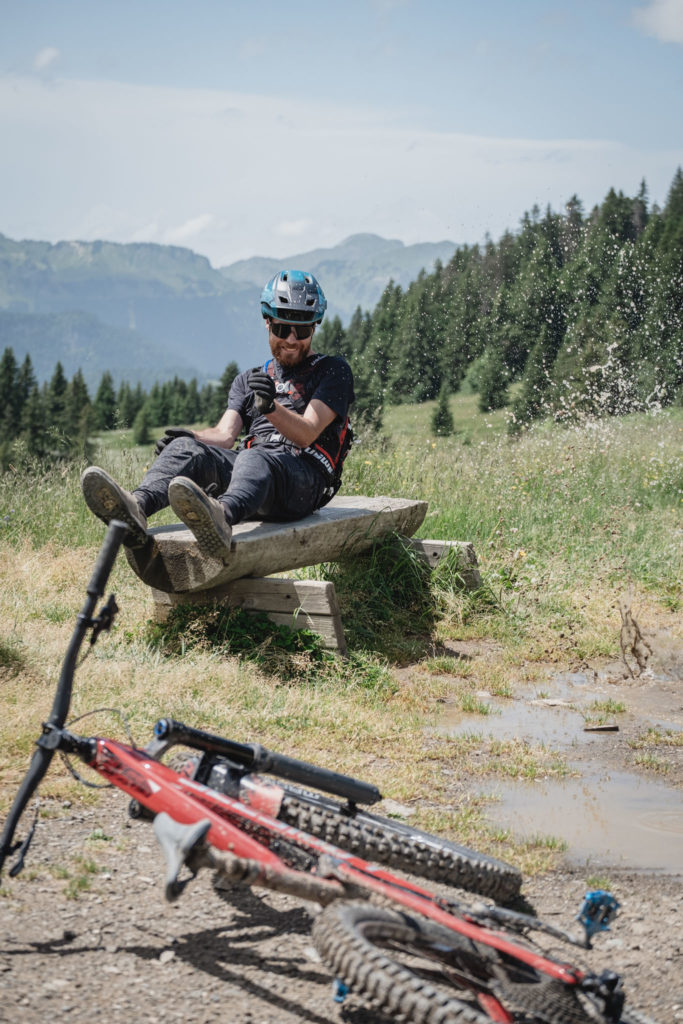 Finalement, le soleil finit par sortir et c’est sur un sol (presque) sec que nous retournons sur les Gets. Fin du bikepark, cette après-midi ce sera très différent !