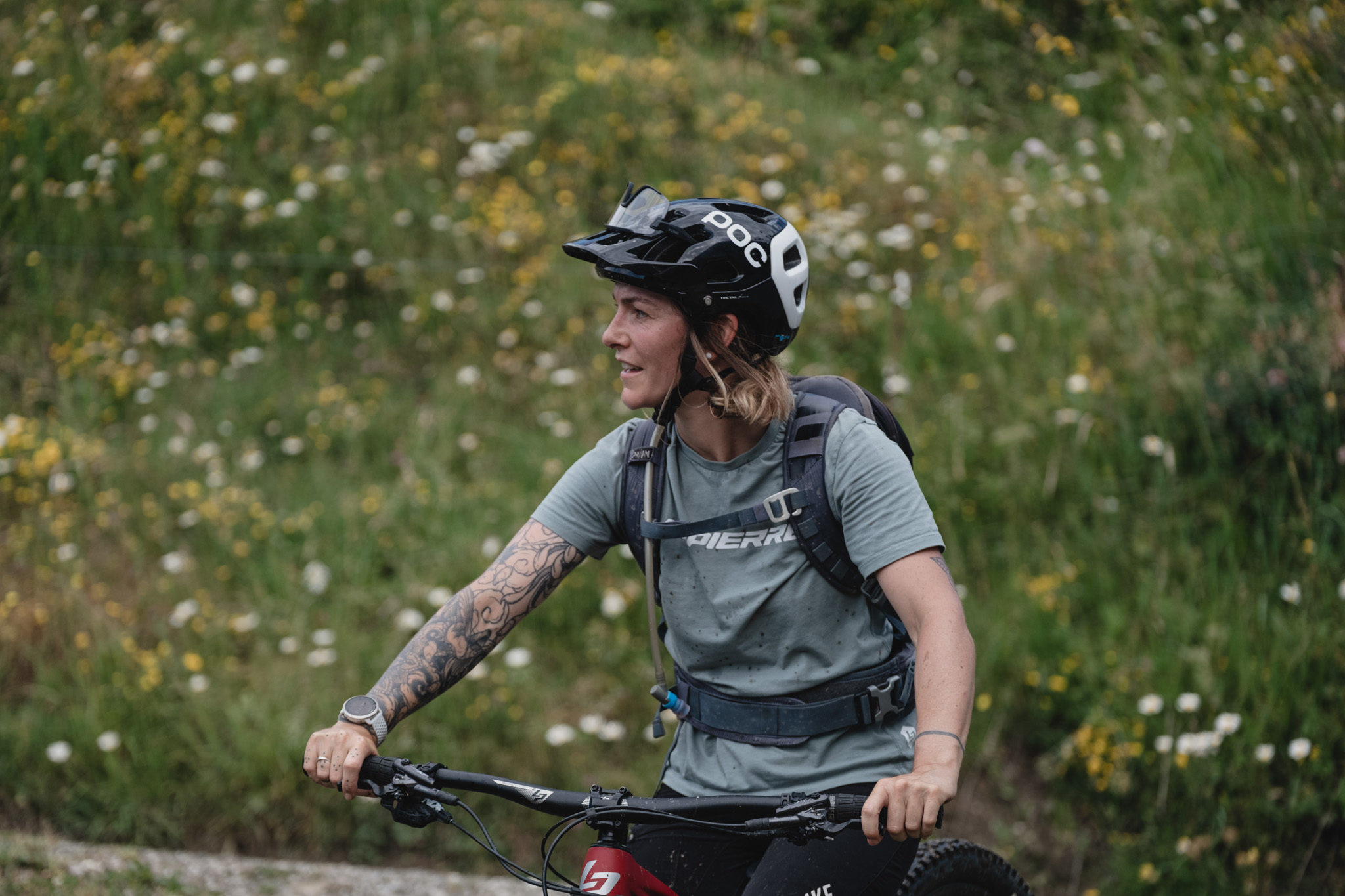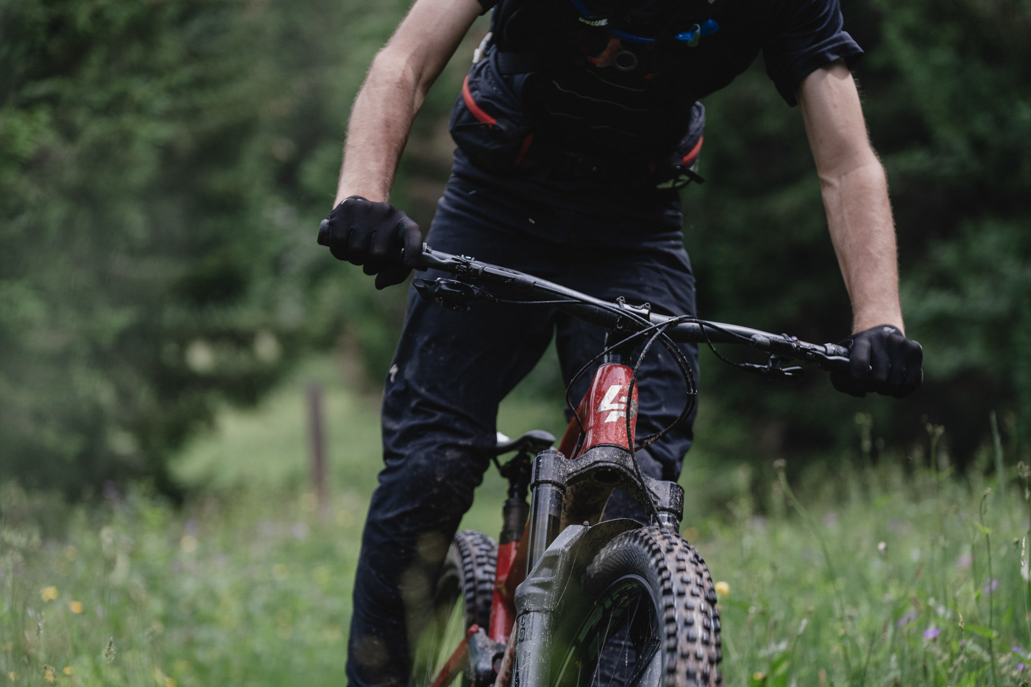 C’est aussi l’occasion de prendre en main notre Spicy CF Team et de vérifier les réglages faits un peu plus tôt. Le Spicy, nous le connaissons bien pour l’avoir testé l’année dernière (lire Lapierre Spicy CF 7.9 : l’EWS à la portée de tous) mais cette version est un peu différente : l’amortisseur à air ou les roues Zipp 3Zero Moto ont de quoi modifier un peu le comportement du vélo.
