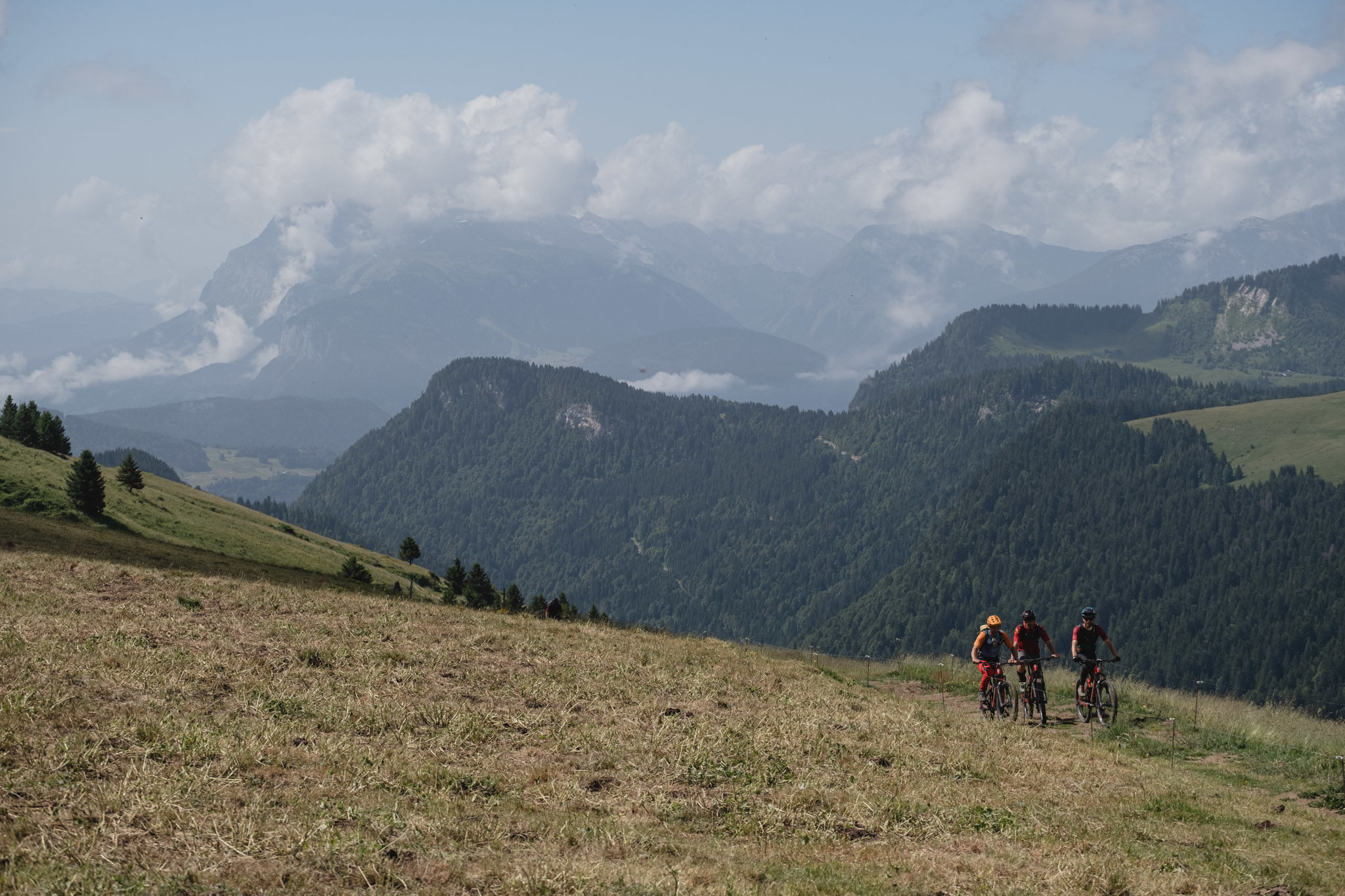 Les ebikers connaissent bien cette boucle pour l’avoir parcourue sur la ePass’Portes cette année mais nos guides ont prévu quelques variantes… Au col de l’Encrenaz, nous continuons ainsi à monter pour aller chercher le joli col de la Basse, au milieu des alpages.