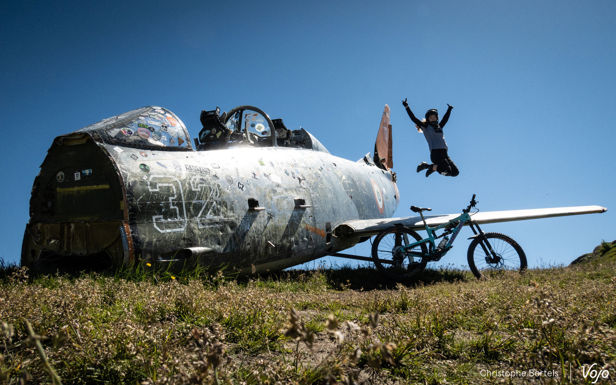 Petite pause photo obligatoire à côté (ou dessus, voire dedans, au choix) de ce Fiat G.91, un avion de chasse italien mis en service à la fin des années 50. Rassurez-vous, il ne s’est pas écrasé là sur la montagne, il y a été placé comme attraction pour le snowpark durant l’hiver 2013, et n’en a pas bougé depuis.