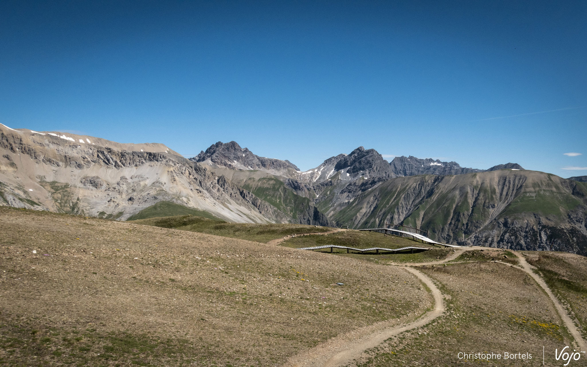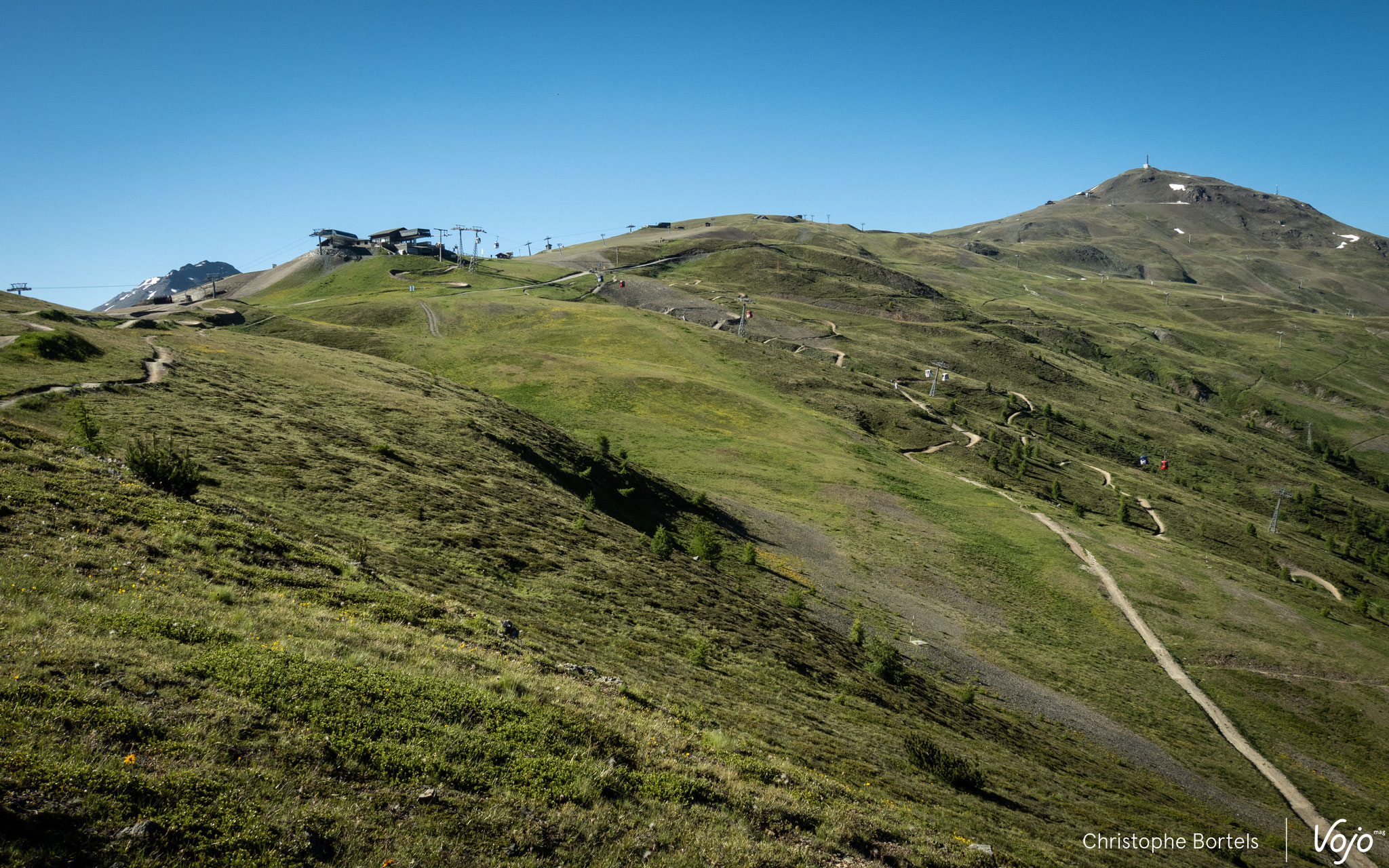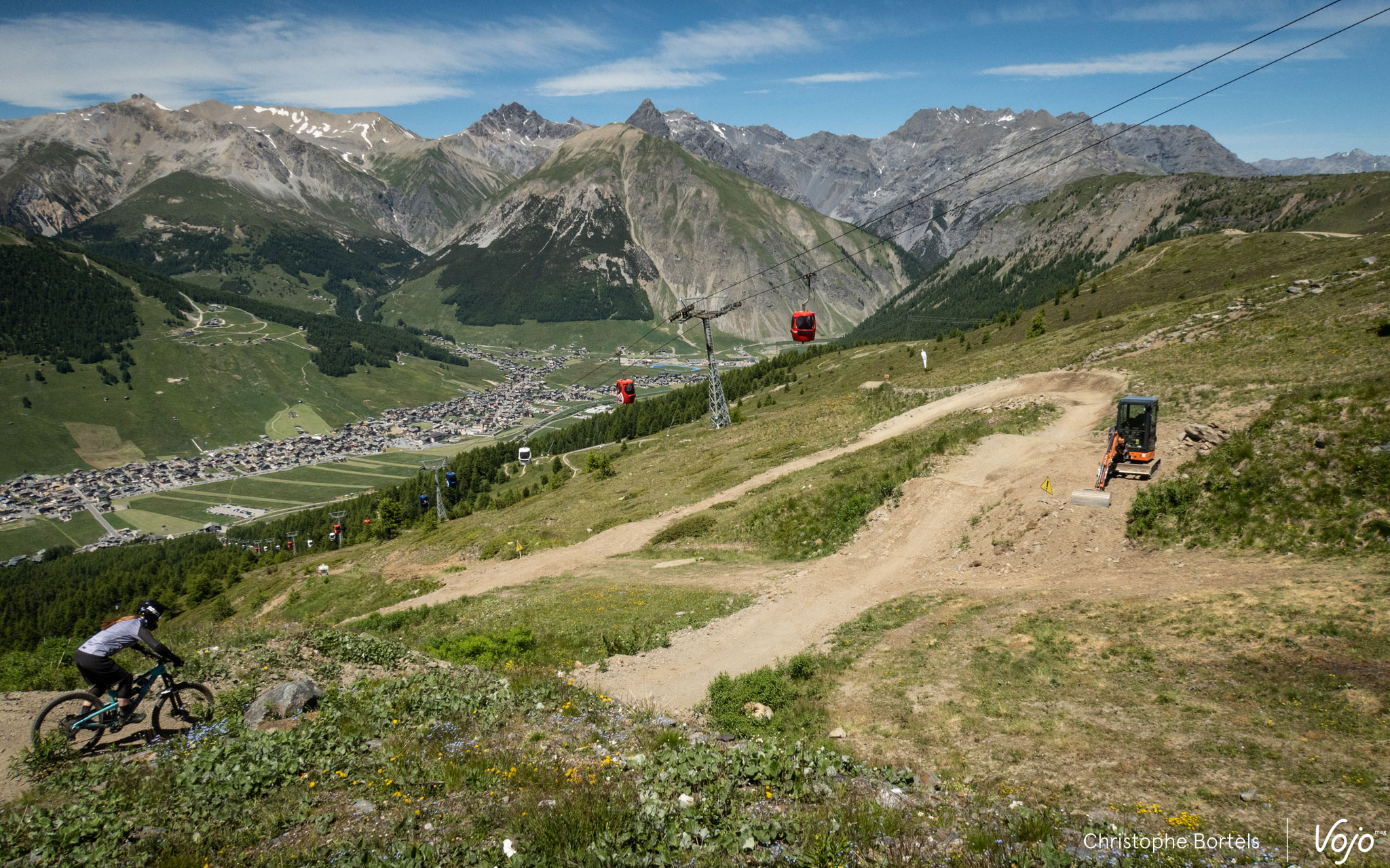 Nous voilà à présent en haut de l’autre terrain de jeu que propose Livigno : Carosello 3000, qui tient son nom des principales télécabines qui desservent le secteur et permettent d’avaler 865m de dénivelé. En été, elles sont complétées par deux autres télécabines et un télésiège, situés à l’autre bout du « bikepark ».