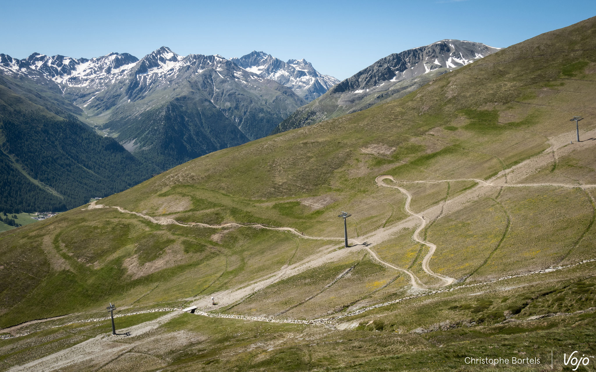 Petite particularité de Carosello 3000 : les pistes VTT n’occupent que la moitié supérieure du flanc de la montagne.