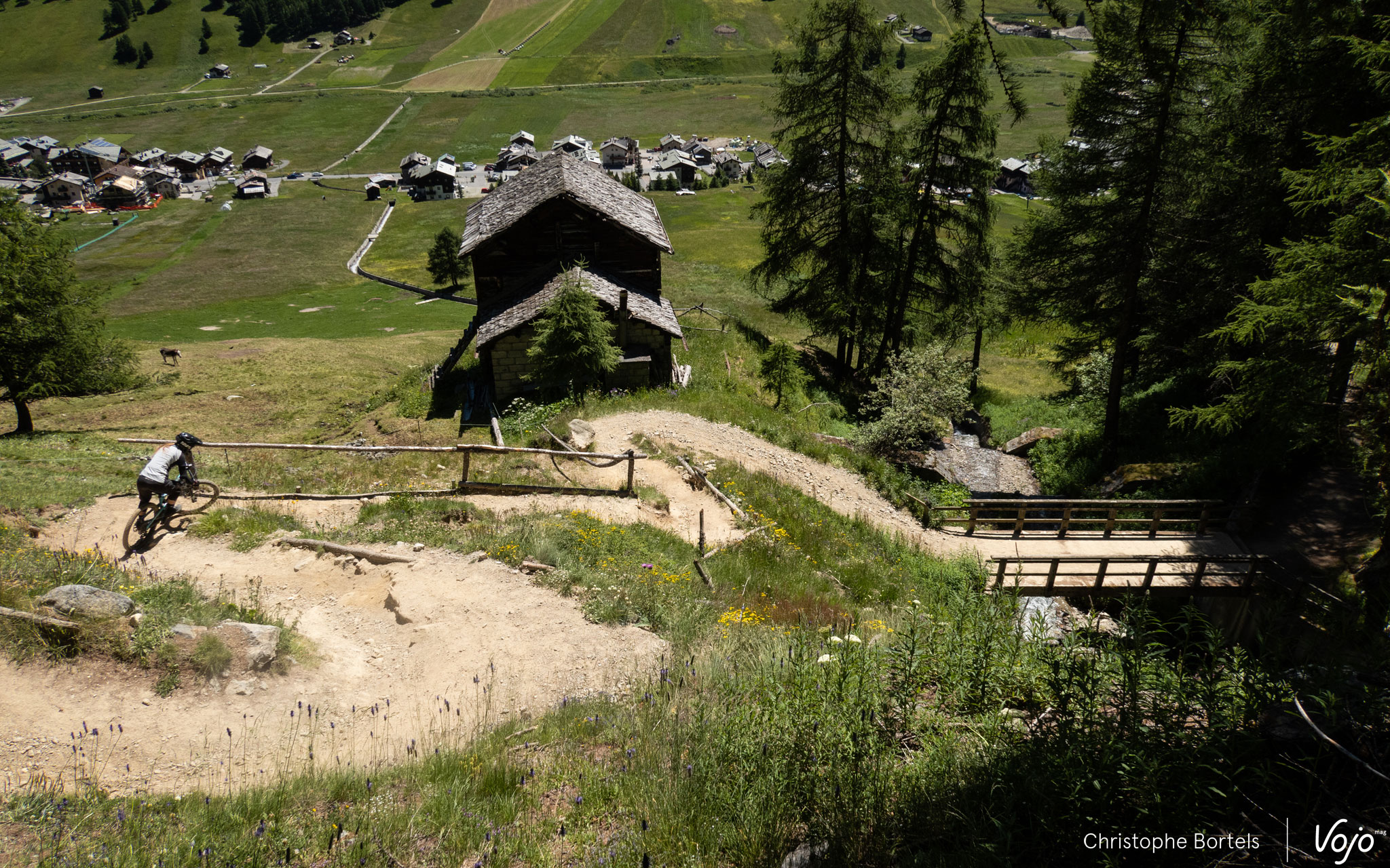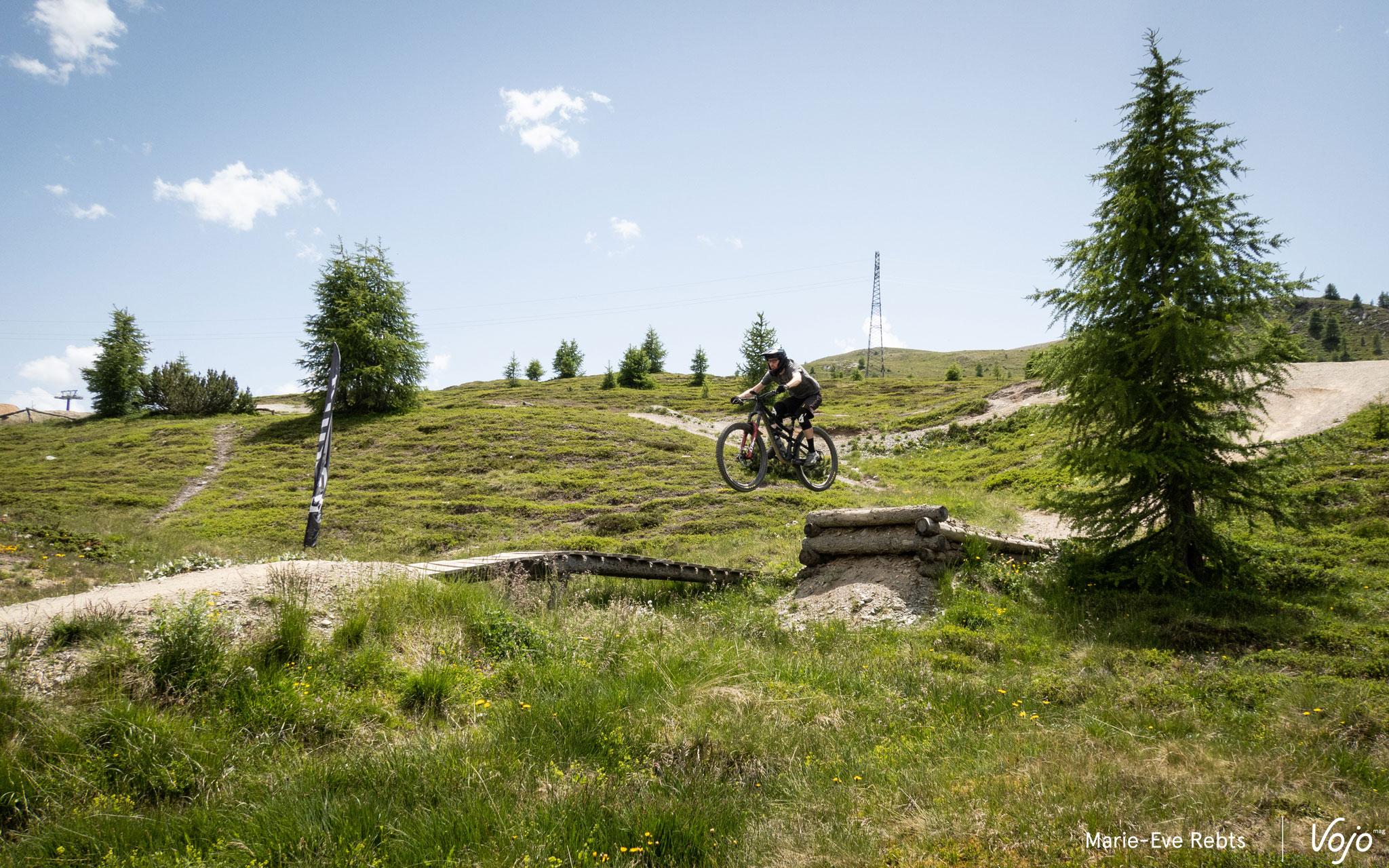 Pour redescendre dans la vallée, il n’y a pas 36 solutions : tout d’abord emprunter la Blueberry Line, une belle trace sympa et flow où l’on retrouve cet original virage à 360°, le Blueberry Eye. Si vous roulez en groupe, attention à la synchronisation !