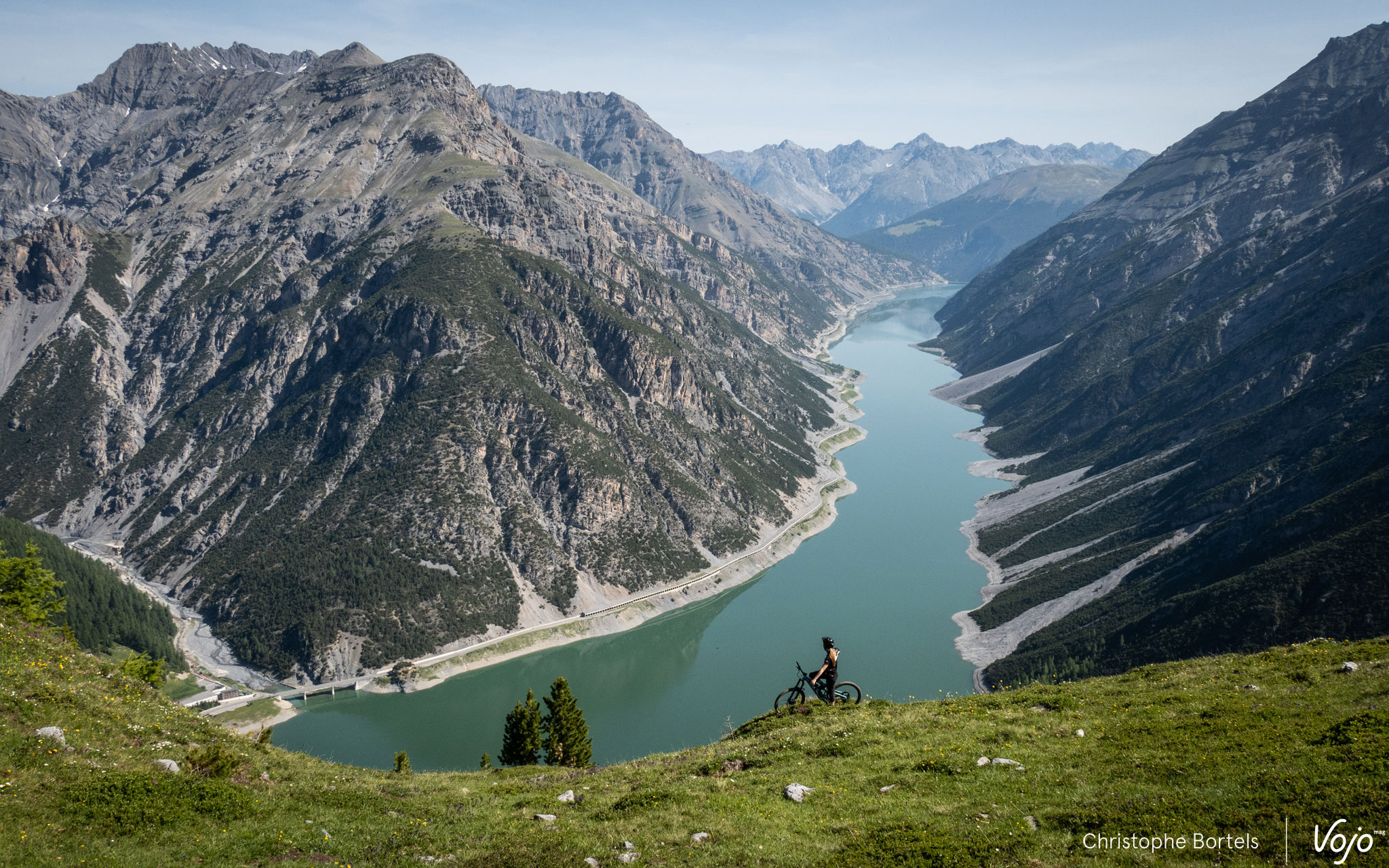 A Livigno, il est également possible de sortir des sentiers battus et partir à l’aventure pour explorer les vallées et sommets voisins. C’est plus physique que du bikepark, évidemment, mais on est souvent récompensé par des paysages magistraux, comme ici en arrivant au Crap de la Parè, un promontoire situé à 2393m d’altitude qui offre une impressionnante vue panoramique sur la vallée.