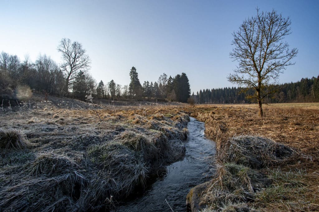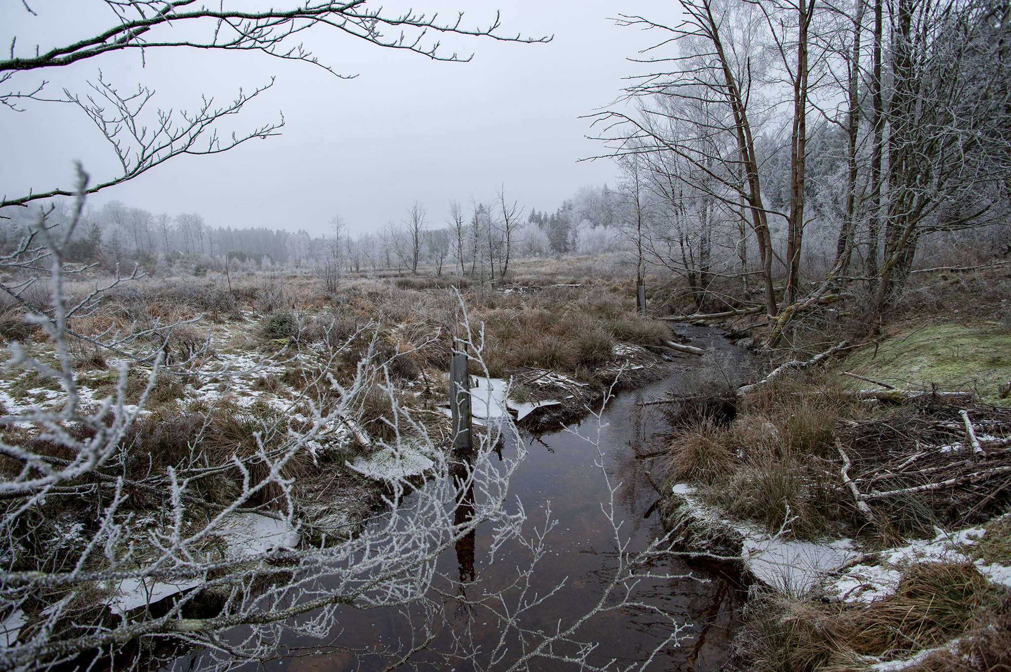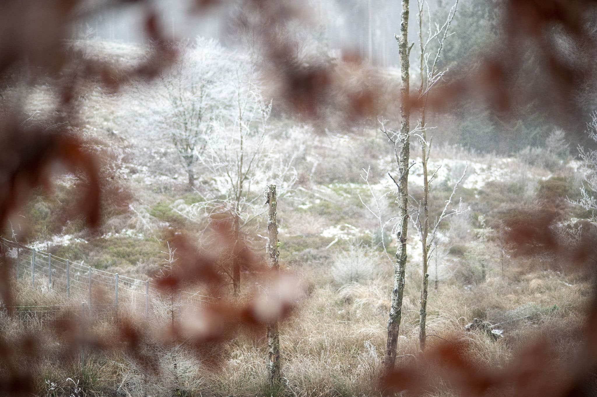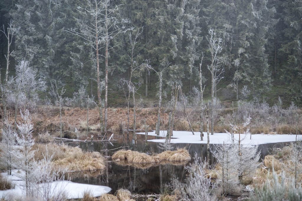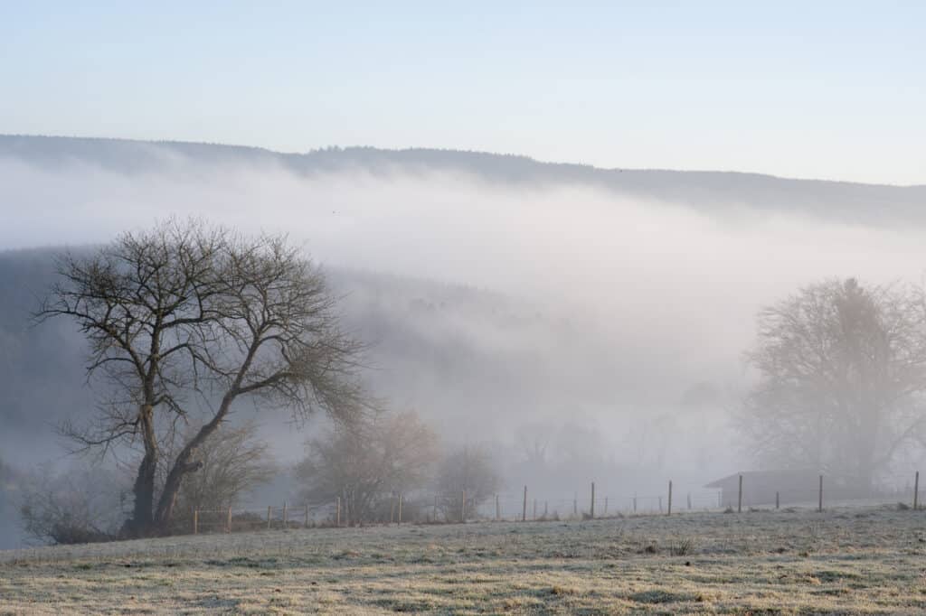 Le village est situé au pied d’un de nos plus grands « monts », la Baraque de Fraiture. L’altitude ici, pourtant dérisoire de 500 mètres, change la donne. Tôt ce matin, avec la dégringolade du thermomètre, le plateau est recouvert de givre et de glace.