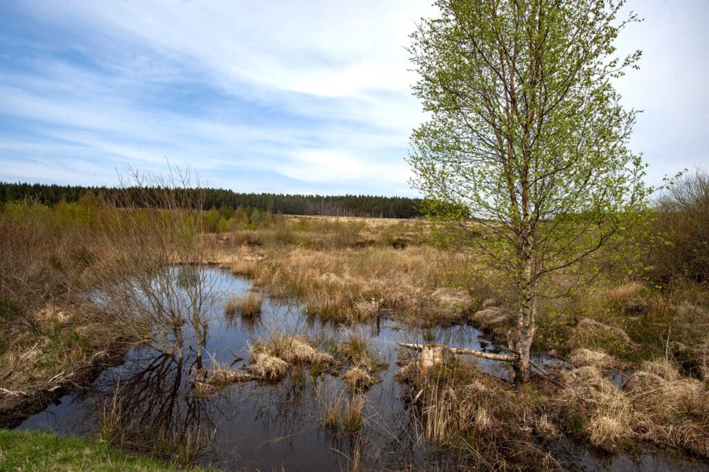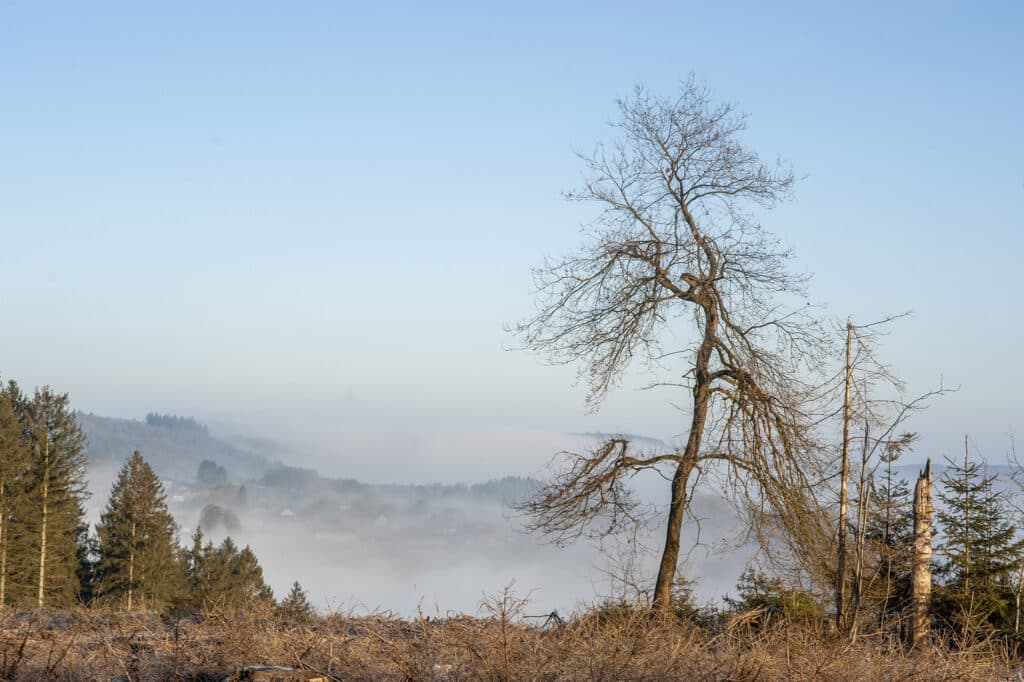 Si la randonnée s’effectue sous le couvert végétal, elle n’est aucunement monotone. Les rangées d’épicéas que l’on rencontre trop souvent en Ardenne s’effacent face à de belles forêts mixtes de pins et de feuillus où pousse à leurs pieds un riche biotope. En été, leur parfum se mêle à celui des myrtilles sauvages. En ce mois de mars, le randonneur se contentera d’un air pur et sec ; la pollution semble si loin.