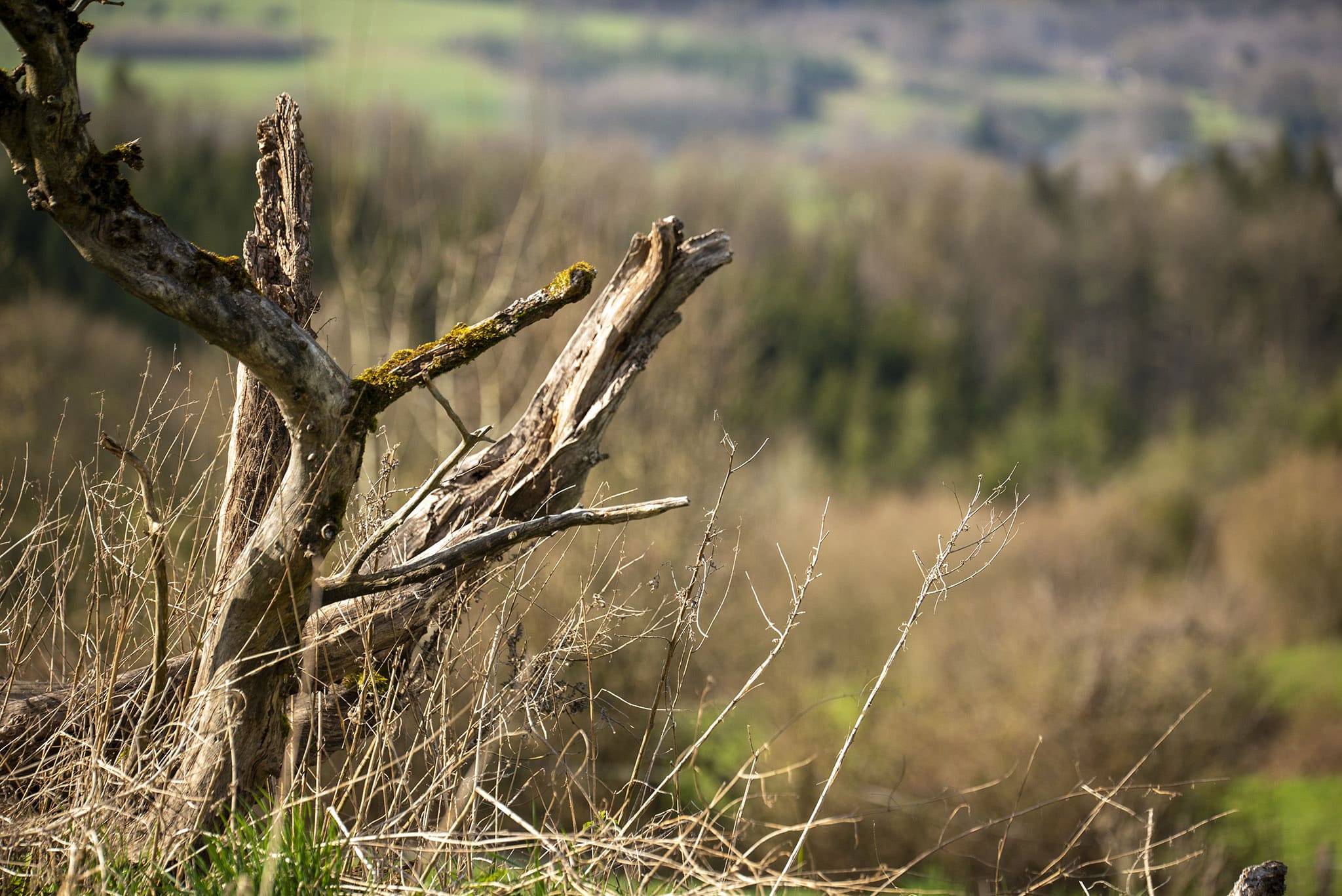 Peu après la longue ascension qui nous porte vers Malempré, là où les conifères recouvraient les sommets de la colline, une grande coupe à blanc dévoile un paysage qui pourrait ressembler à ces anciennes landes de bruyères du XIXe siècle. La clarté tombe vite, sans crier gare. Le pâle soleil trace de longs rayons sur les prés le long de la route menant à Vaux-Chavane. La belle lumière du soir fait rougeoyer les murs de schiste des maisons où à l’intérieur, les habitants s’emmitouflent pour une nuit qui s’annonce froide… Le printemps se fera encore attendre un peu.