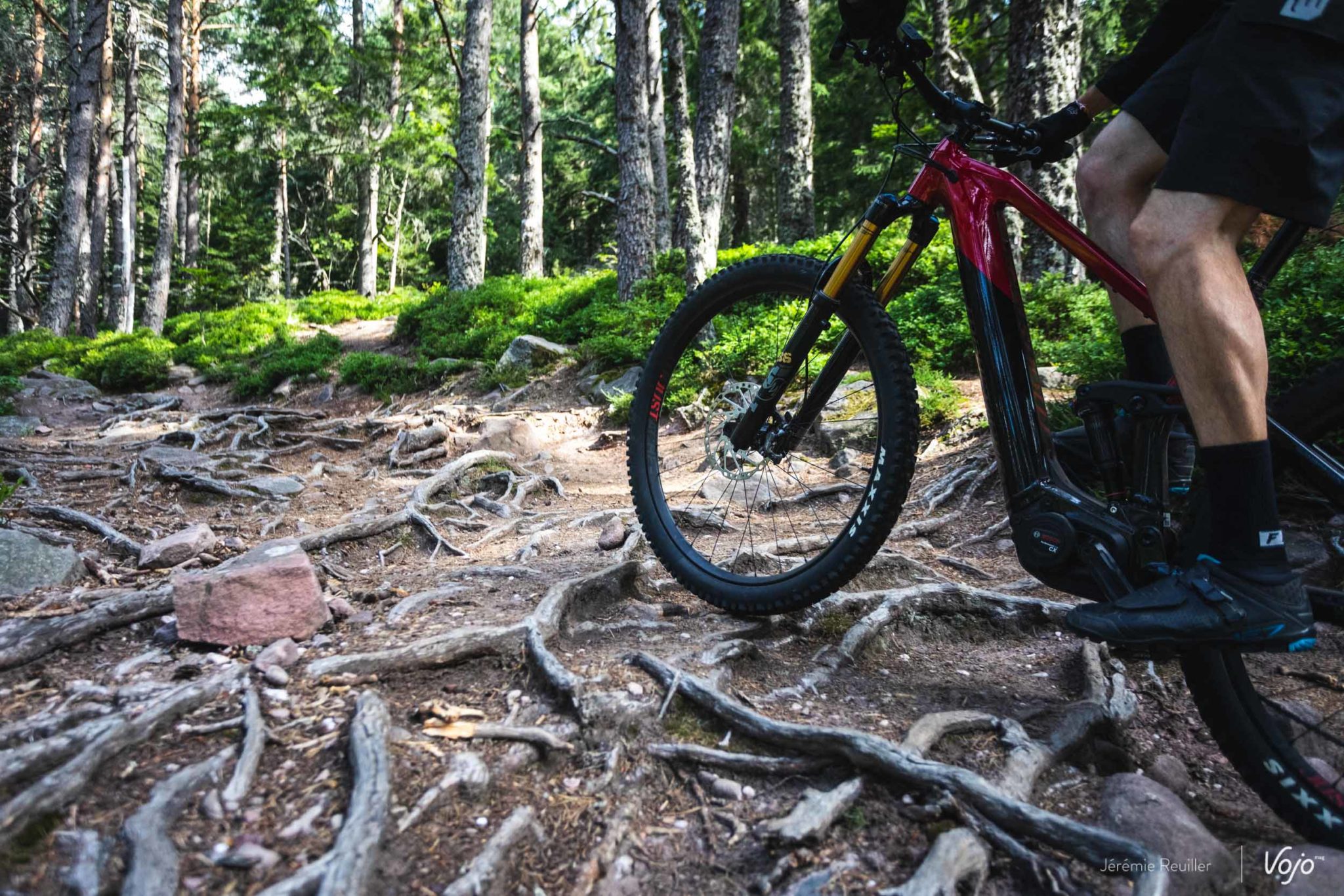 Quand on vous parlait de tester, voilà un coin où on a enchaîné quelques passages dans chaque sens, histoire de bien sentir le travail des suspensions : à hautes vitesses en descente, et à basses vitesses pour mettre le grip à rude épreuve en montée.