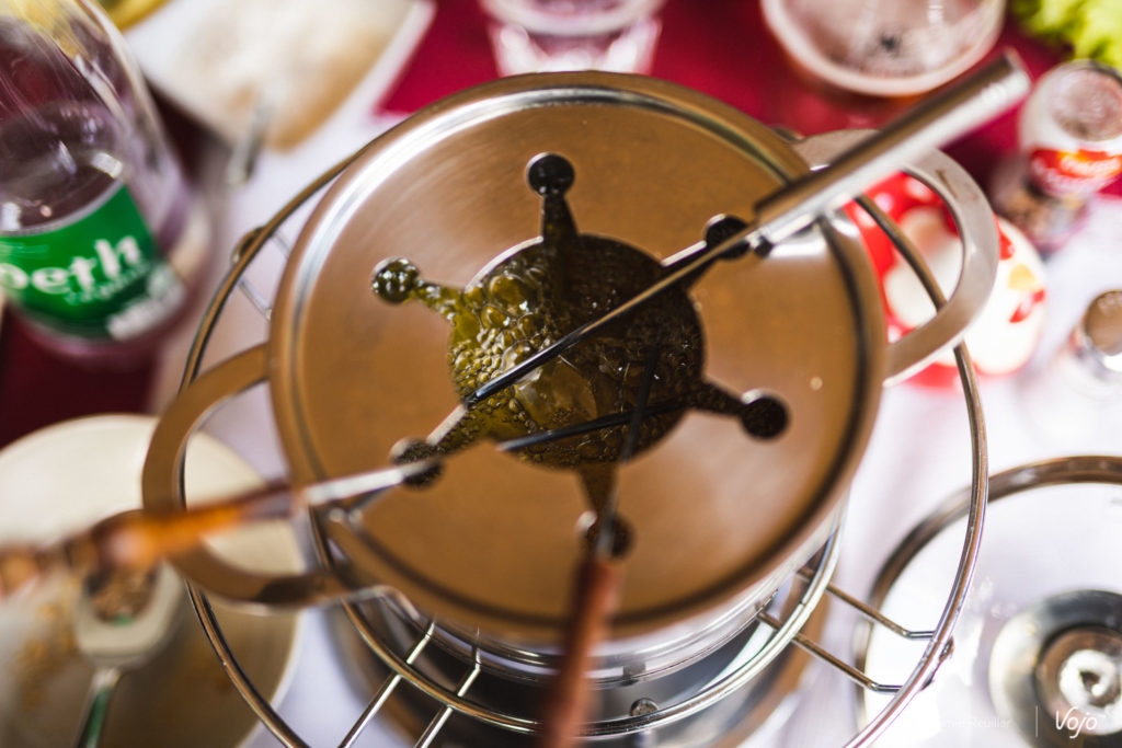 Mais il n’y a pas que cela : il y a aussi et surtout une mémorable fondue de poulet issu de la production maison. De la basse-cour à l’assiette, il n’y a quelque mètres. Difficile de faire plus circuit court que cela.