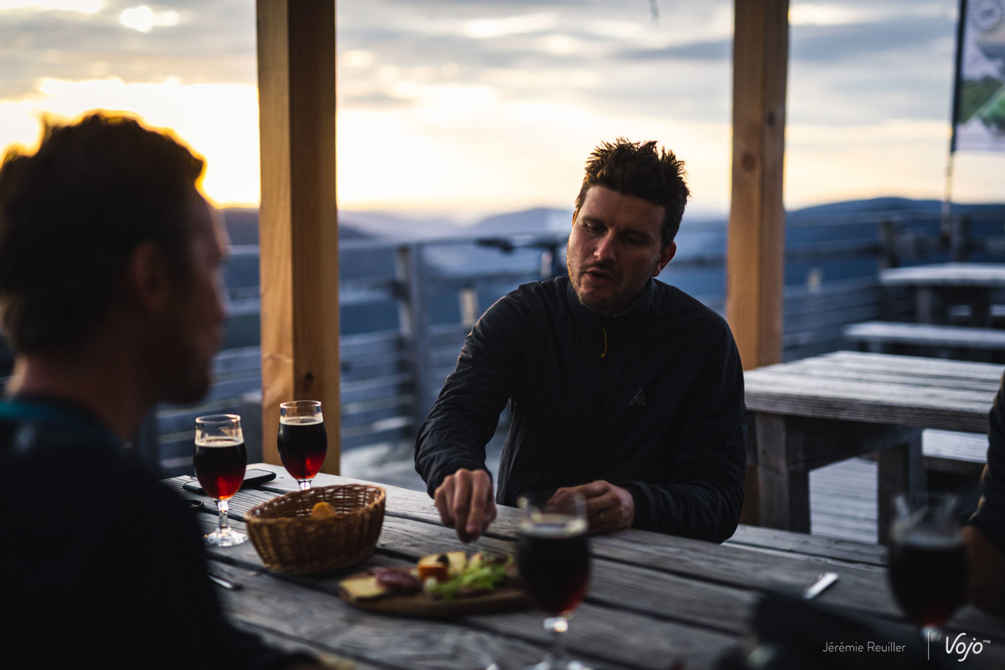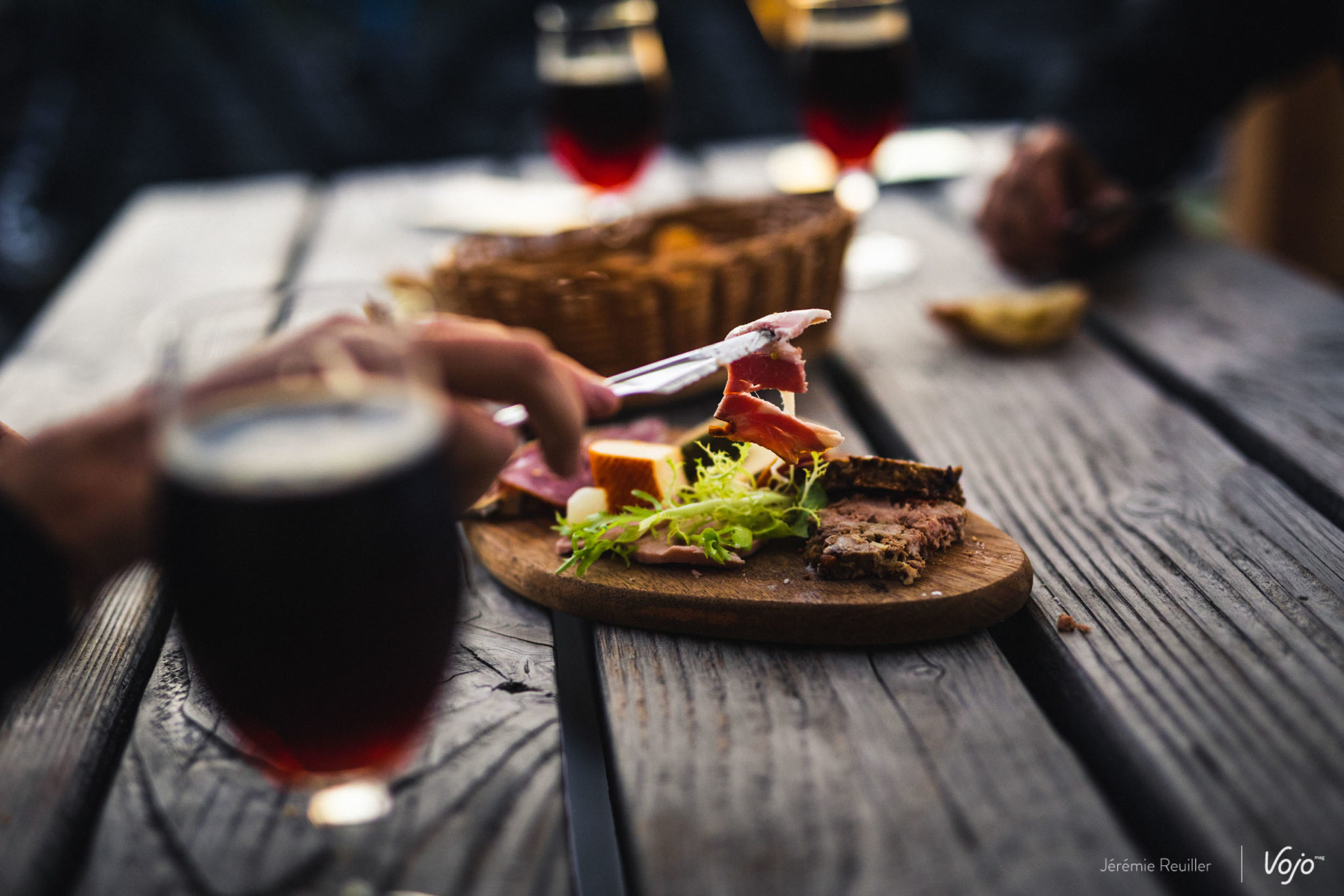 Bière, charcuteries et fromages locaux au refuge du Sotré, avec vue sur La Bresse, le Hohneck et le lac de Longemer, quoi de mieux pour prendre des forces avant la longue journée qui s’annonce le lendemain ? Avec plus de 70 bornes et plus de 3600m de dénivelé positif au programme, même si on est en vélo « assisté », il va rester pas mal de taf pour les bonshommes !