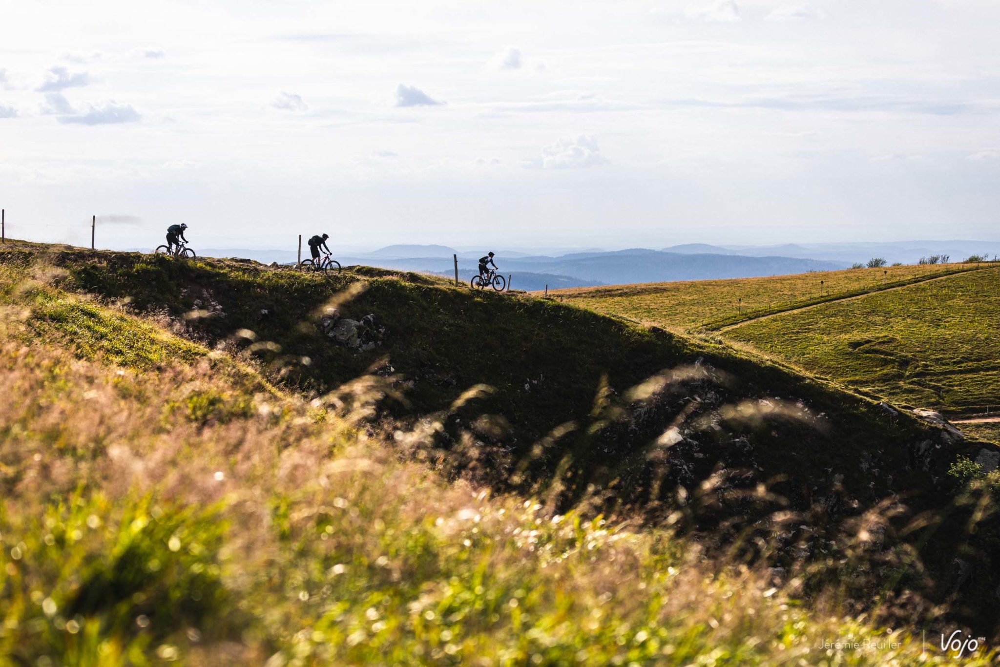 Notre petite aventure commence un beau vendredi soir de fin d’été. Après avoir laissé nos voitures au col de la Schlucht, nous prenons de la hauteur pour rejoindre une des célèbres fermes auberges du coin et prendre quelques premiers clichés avec une belle lumière. Pour ce voyage, Clément de chez Moustache est bien sûr de la partie, et Guillaume de chez Bosch ne s’est pas fait prier non plus. Même si Clément n’habite pas très loin et vient régulièrement rouler dans la région, Guillaume sera un guide indispensable pour notre petite expédition. Et, même si vous ne le voyez pas, impossible d’oublier Jérémie Reuiller qui est là pour immortaliser avec talent notre périple.