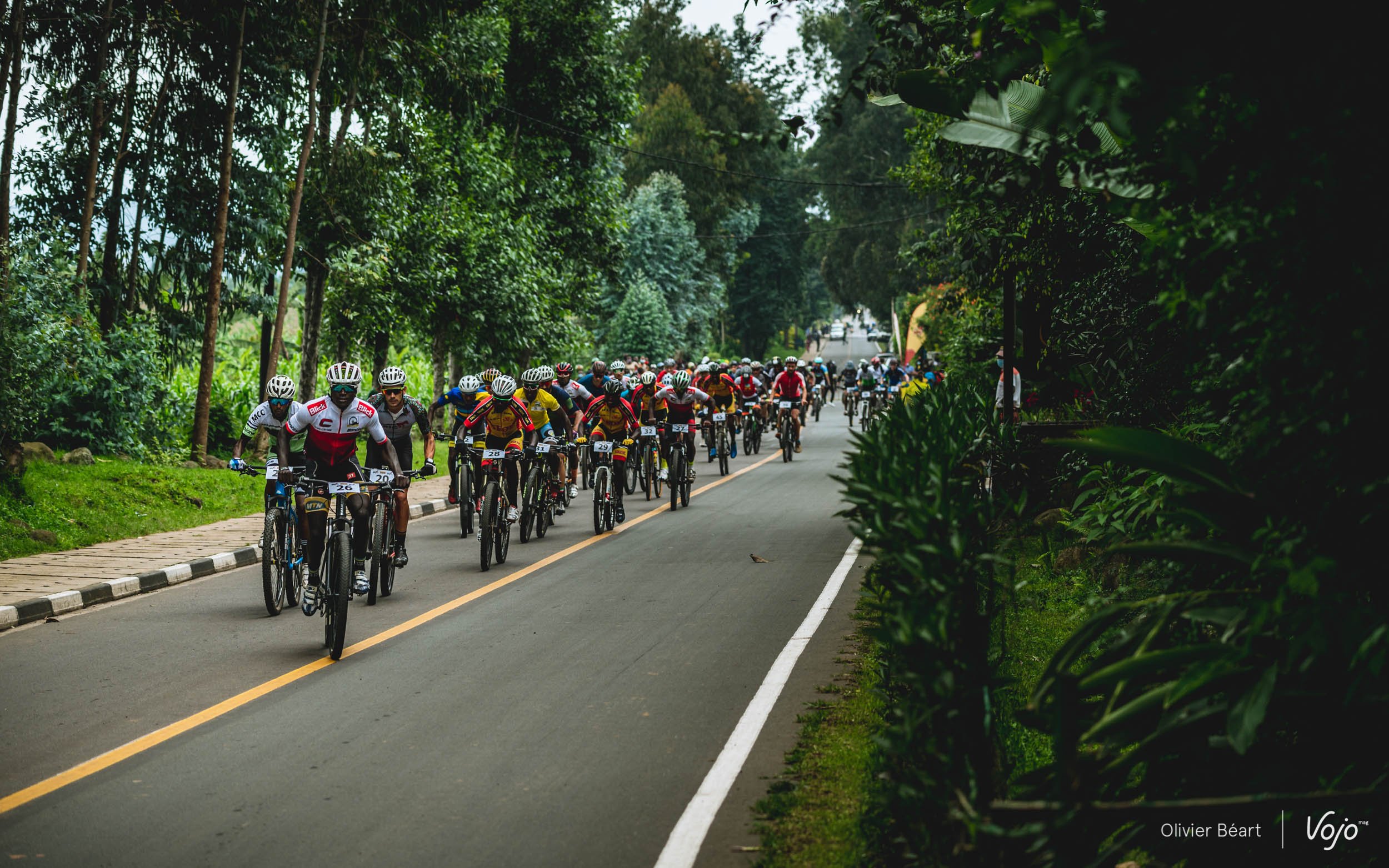 Sur la ligne, plus de 50 coureurs se sont retrouvés pour former un beau peloton très varié avec des expatriés, quelques grands noms du cyclisme local comme Adrien Niyonshuti et Nathan Byukusenge qui ont représenté le pays aux deux dernières olympiades, de jeunes compétiteurs locaux désireux de profiter de l’occasion pour s’essayer au VTT, de simples randonneurs qui ne voulaient manquer ce moment sous aucun prétexte même s’ils ne sont en général pas attirés par les courses, plusieurs femmes aussi,…