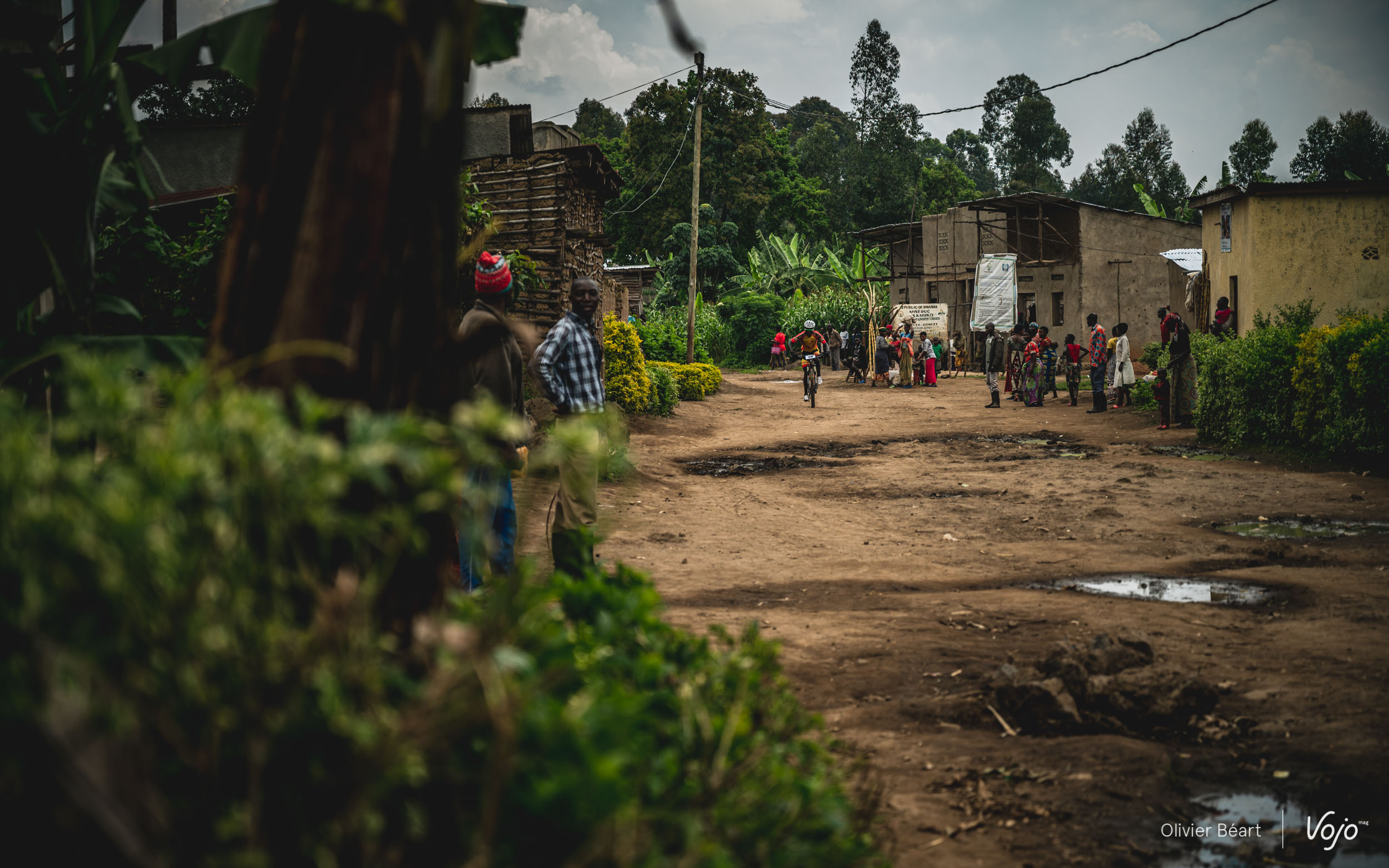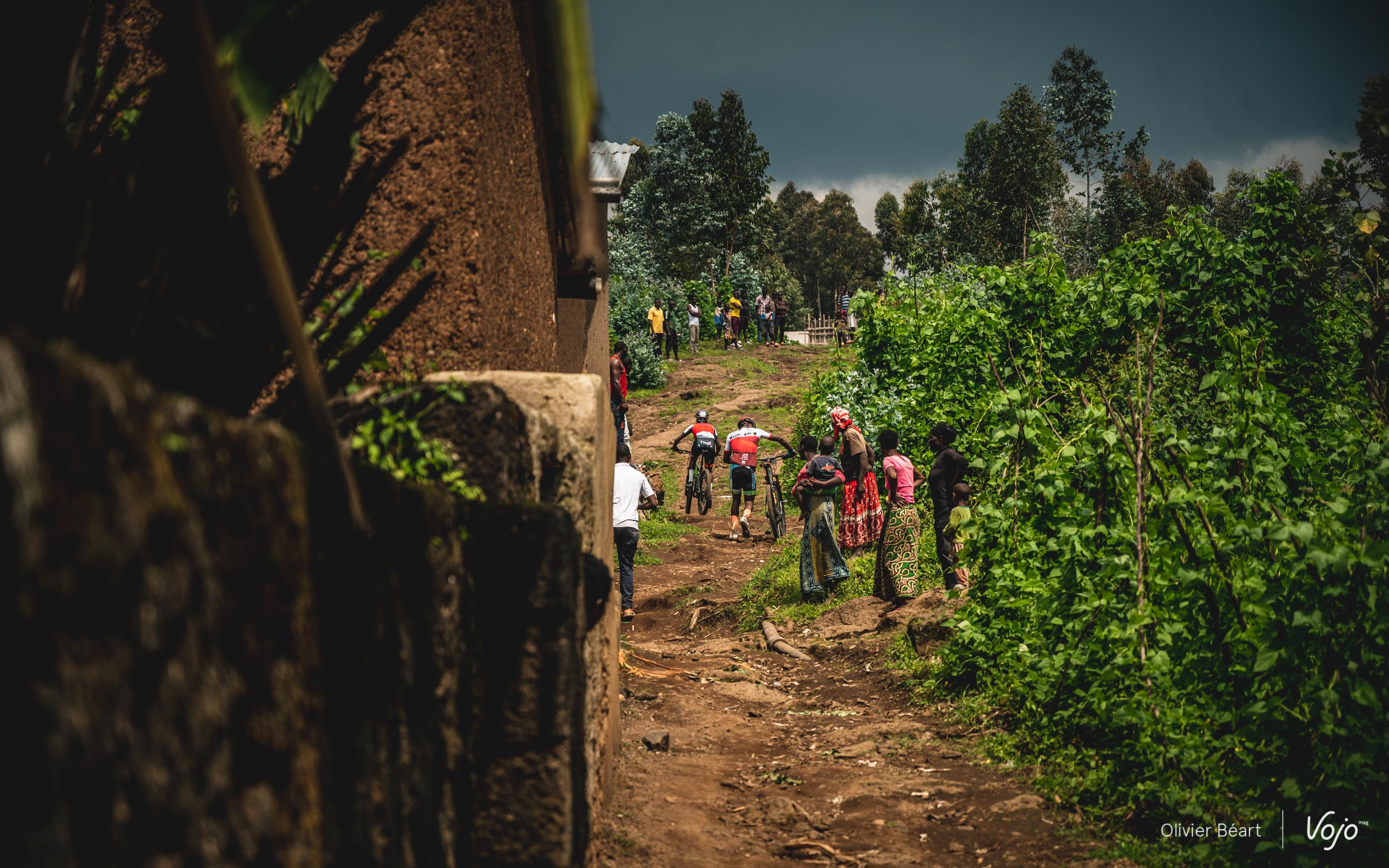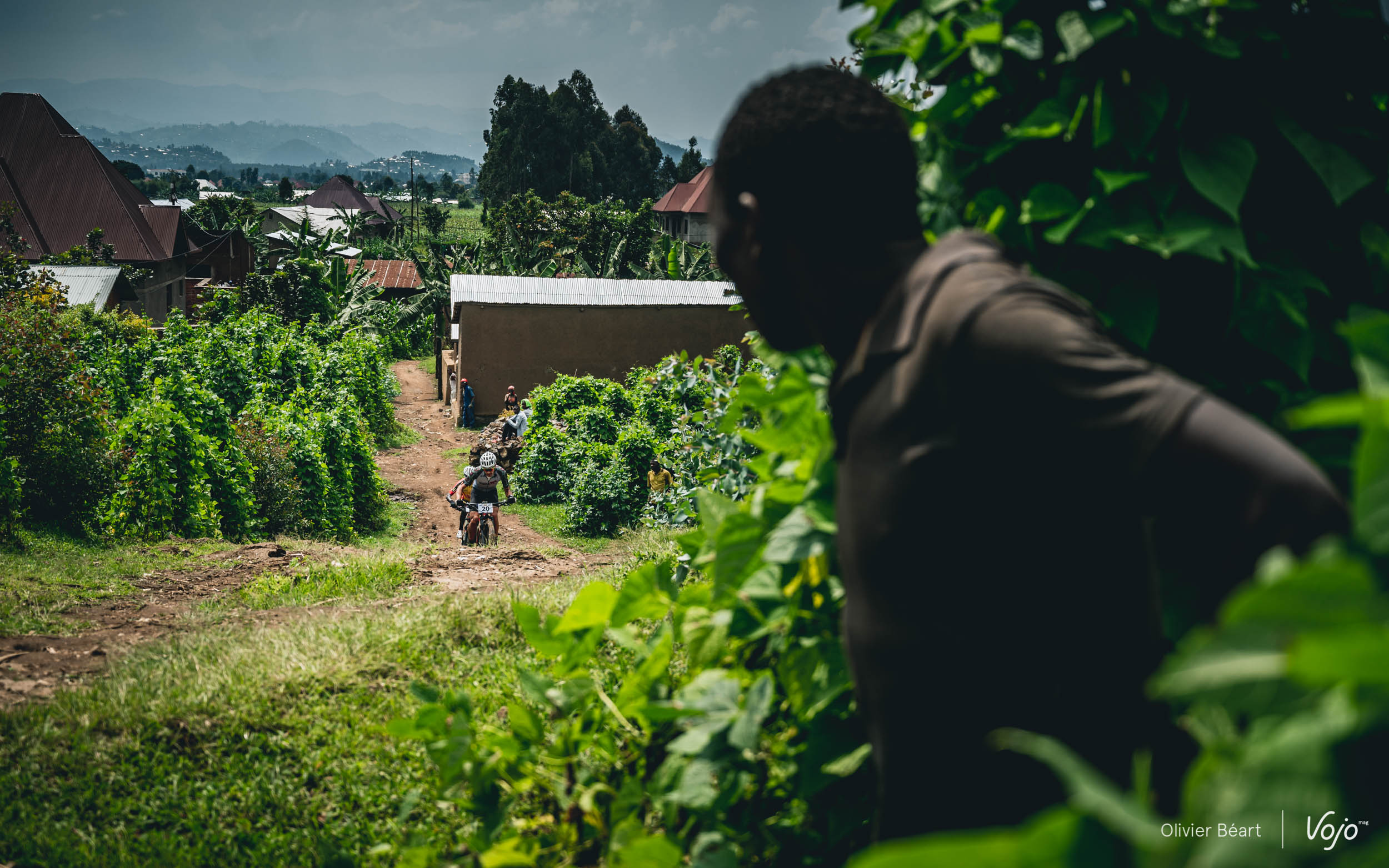 On l’a dit, le parcours a été tracé sous forme d’une longue boucle de 13km au pied des volcans. Pas de dénivelé impressionnant au programme ici car on reste dans les plaines d’altitude, qu’on appelle aussi le potager du Rwanda, mais on a ici une succession de chemins cassants qui imposent d’être toujours actif sur le vélo et très attentif pour ne pas se faire surprendre.