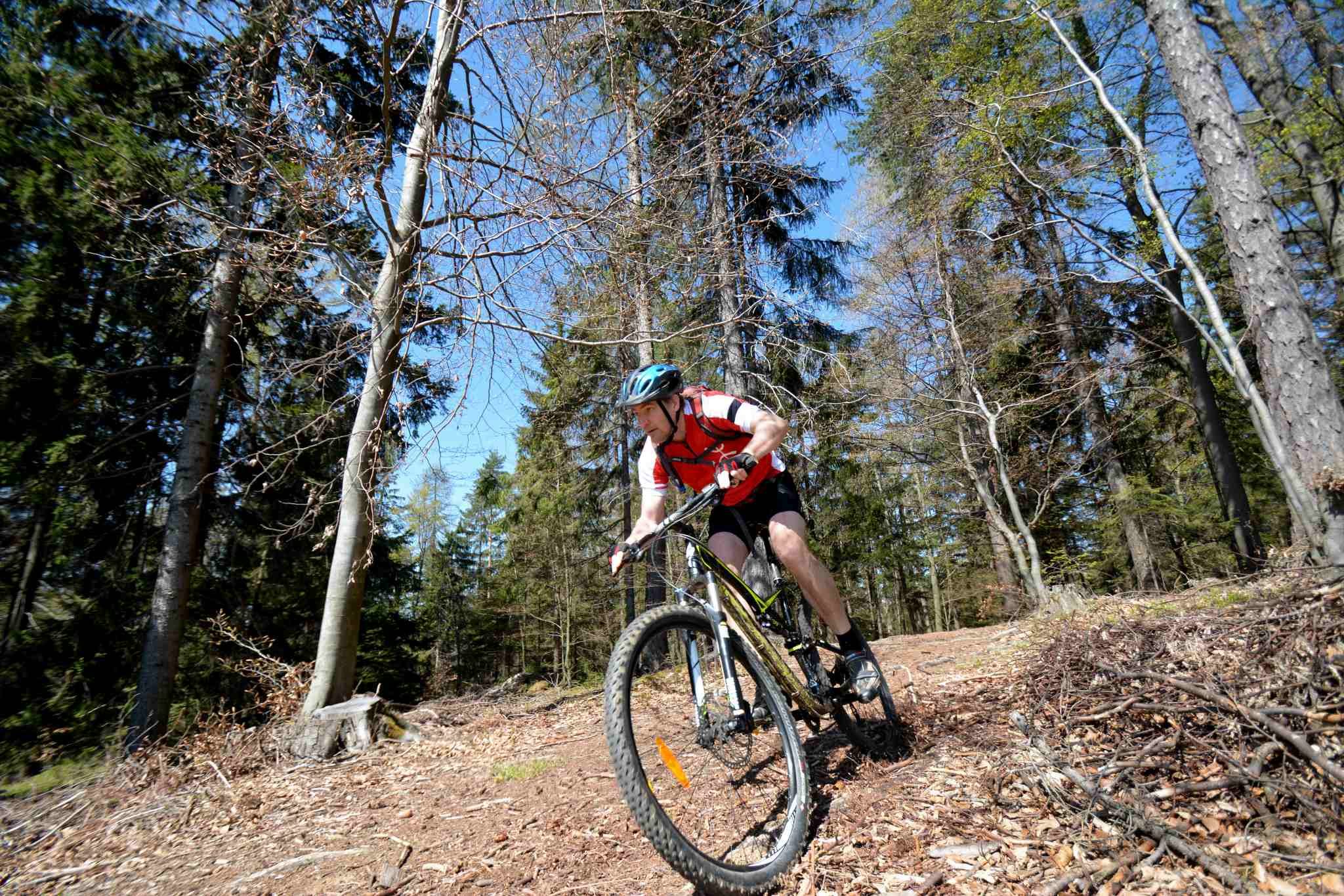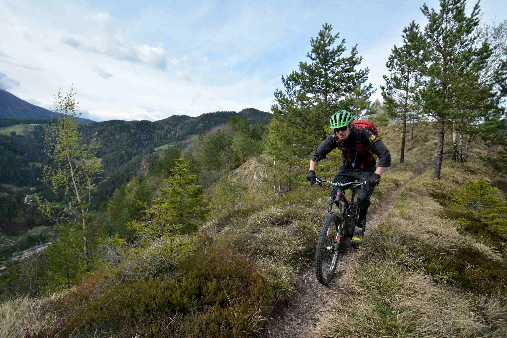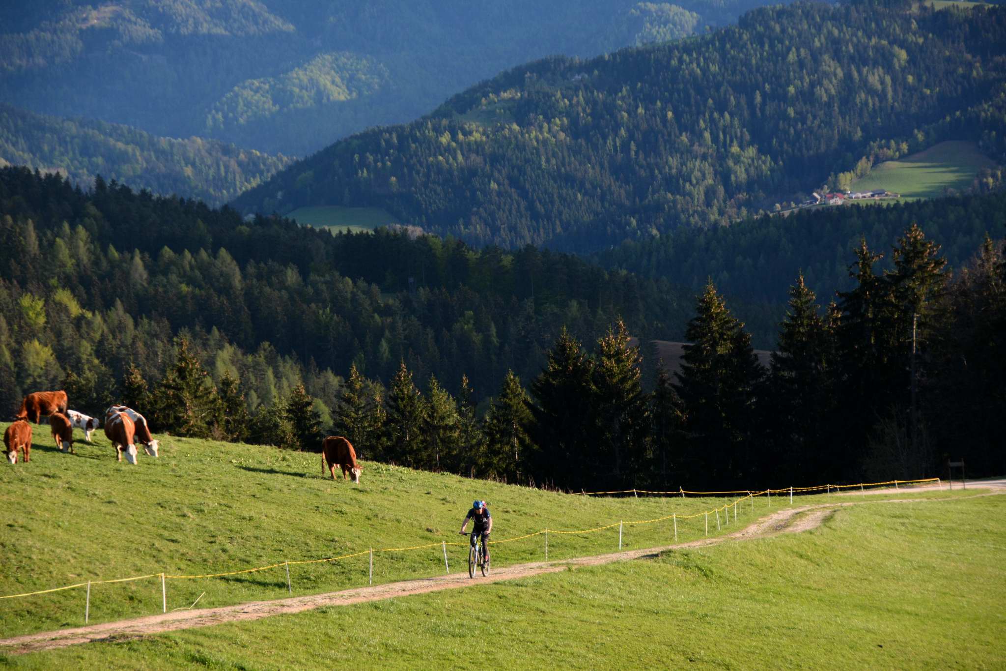 Le lendemain matin nous voilà donc gonflés à bloc, d’autant que le soleil se montre d’emblée généreux. Le but de cette première journée est de découvrir les nombreux singles et les parcours du bike parc entourant la ferme d’Anej. Nous prendrons d’abord de la hauteur en empruntant les « routes » locales, soit des pistes larges et roulantes nous permettant d’atteindre les sommets assez rapidement. L’effort est conséquent, mais la récompense est de taille : tout en haut, la vue est imprenable. A un peu plus de 1000 mètres d’altitude, la beauté de la nature et le silence profond régnant sur ses hauteurs donnerait presqu’envie de faire la sieste. Mais nous devrons repartir sans tarder.