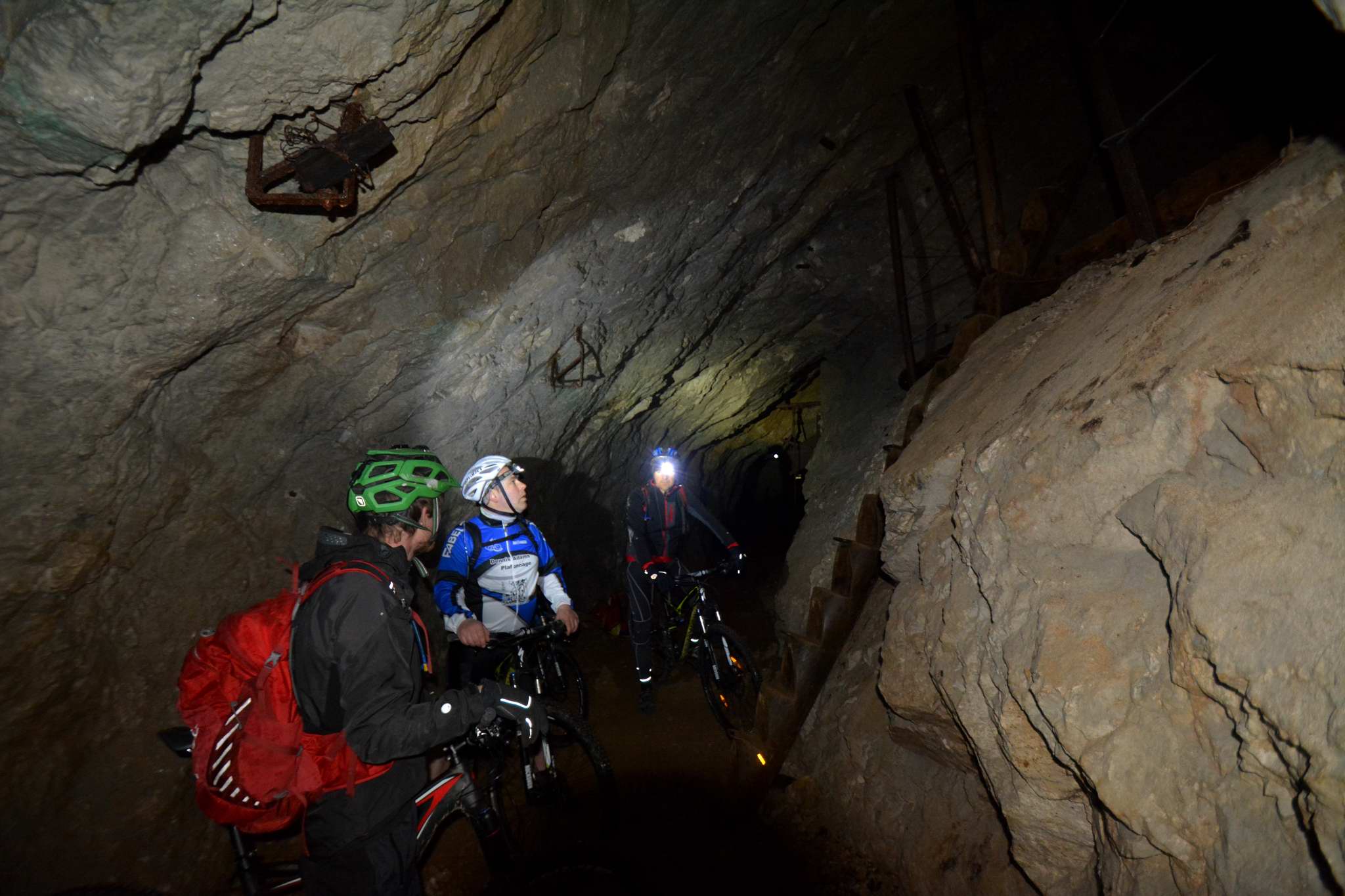 La dernière mine a fermé en 1994, mais les lieux sont maintenant ouverts aux touristes épris d’histoire et de sensations. Après la visite du petit musée, nous enfilons nos grosses vestes et nos cuissards longs pour pénétrer dans la roche via une galerie étroite. C’est parti pour 5 kilomètres d’une expérience unique. L’exercice n’est certes pas compliqué, pour un peu que vous ne soyez pas claustrophobe…Après quelques dizaines de mètres seulement, il fait nuit noire, nous évoluons sous la lumière de nos lampes accrochées aux casques. Et pas question cette fois de quitter la roue arrière d’Anej, mieux vaut ne pas se perdre dans ce labyrinthe géant.