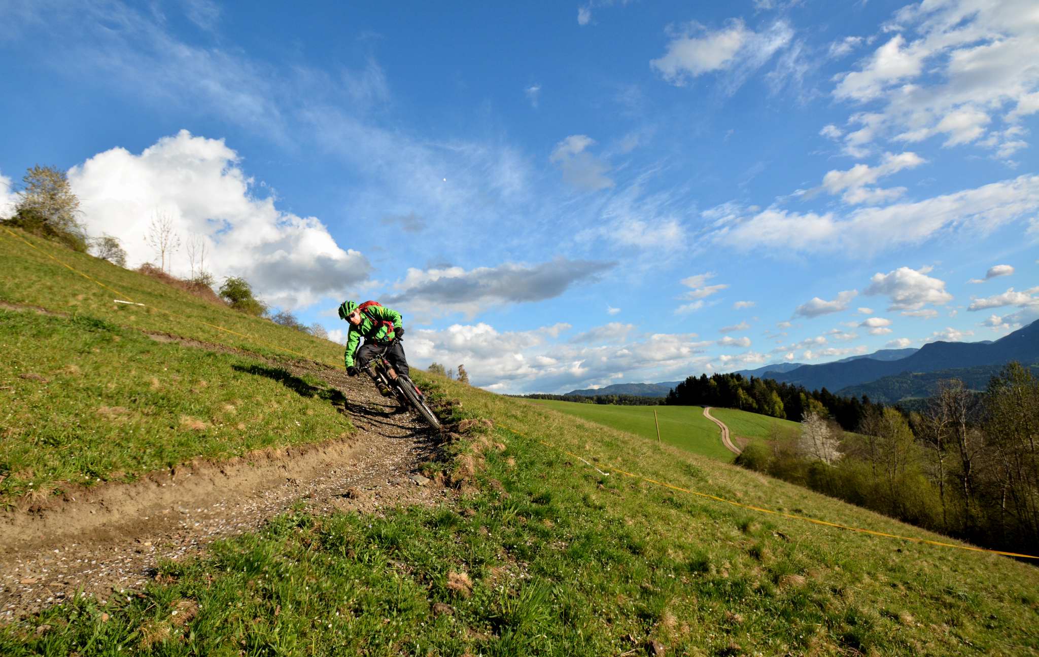 L’après midi nous passons de l’autre côté de le frontière afin d’aller découvrir « le plus long singletrack d’Europe », dixit Anej. Nous nous retrouvons ainsi en Autriche, dans la petite station de ski de Petzen. Le patron des lieux nous explique avoir de grands projets et… beaucoup de confiance dans le succès de ceux-ci. Nous comprendrons très vite le pourquoi de cet élan d’enthousiasme.