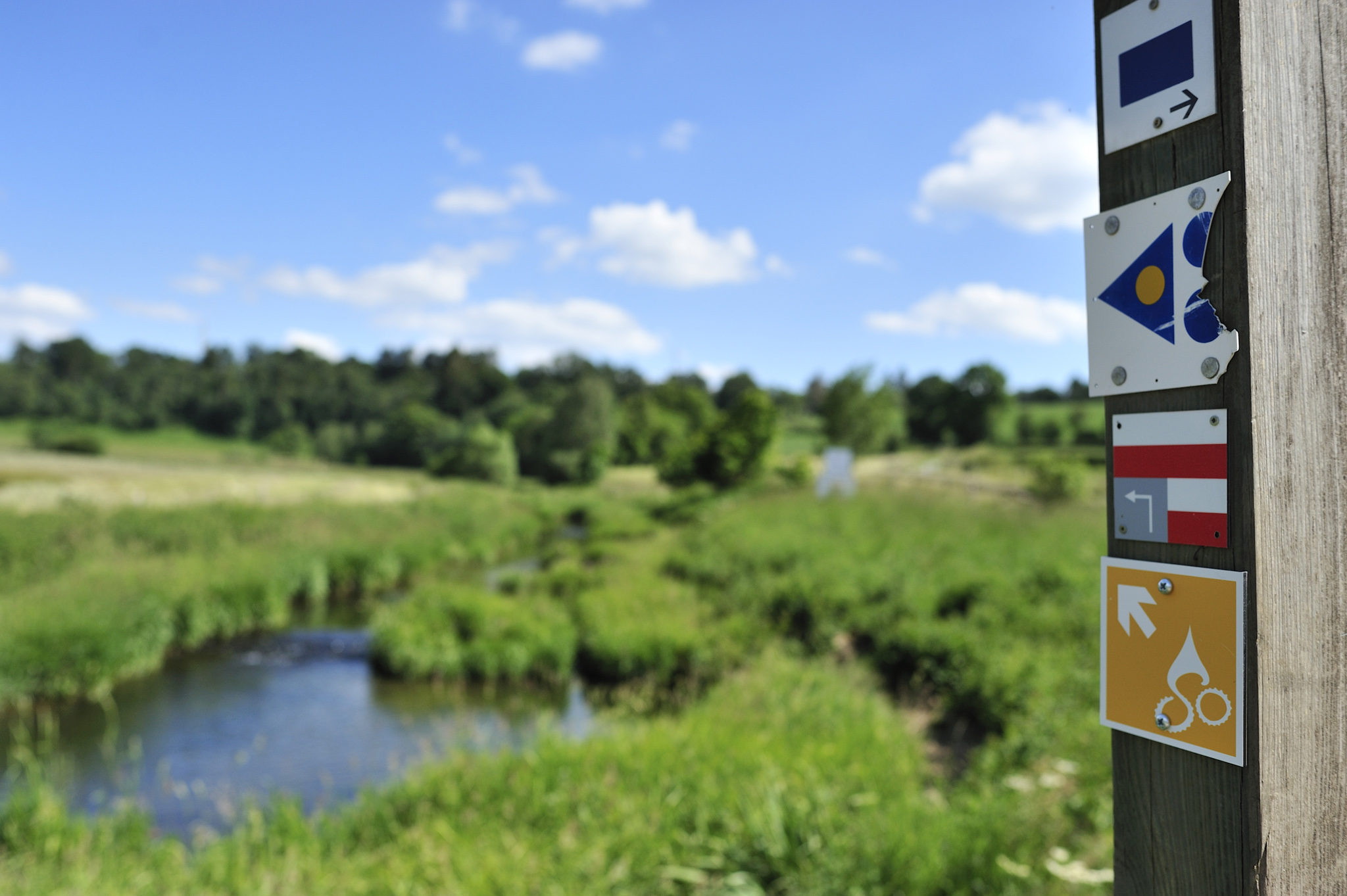 C’est le temps de la fenaison à Weywertz… Les odeurs du foin coupé embaument le chemin ! En ce jour, la nature se montre généreuse, confirmée par le nombre de passereaux qui volent dans le ciel pur de ce début d’été. Via un chemin agréable, nous rejoignons le Vieux Moulin, un endroit magique où coule paresseusement le ruisseau à travers la prairie. Les fermes, pas bien grosses, sont lovées dans les dépressions des vallons et s’intègrent au paysage. Au sommet de la côte, des milans planent et chassent au-dessus de la campagne de Weywertz, parsemée de zones humides et de bosquets.