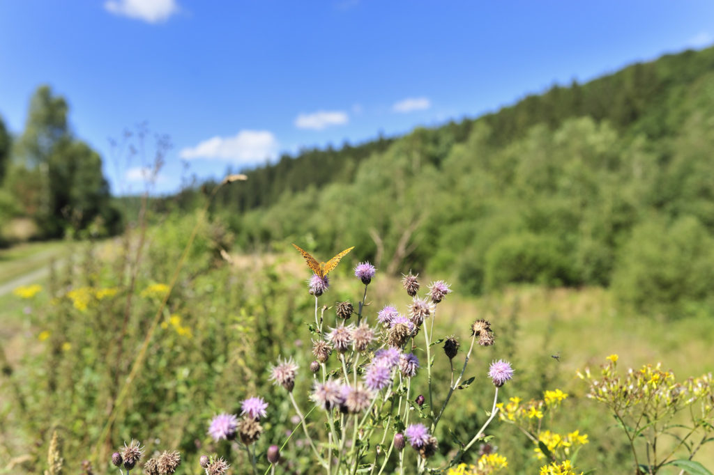Le chant des oiseaux et celui du ruisseau, seuls, vont désormais nous accompagner. Ce sentier sauvage est constellé de fleurs, les papillons virevoltent autour de nous. Ruisseaux, associations de prairies de fauche et de forêts mixtes apportent une biodiversité à la vallée perdue : le Stoneman nous offre ce sentier du bonheur.
