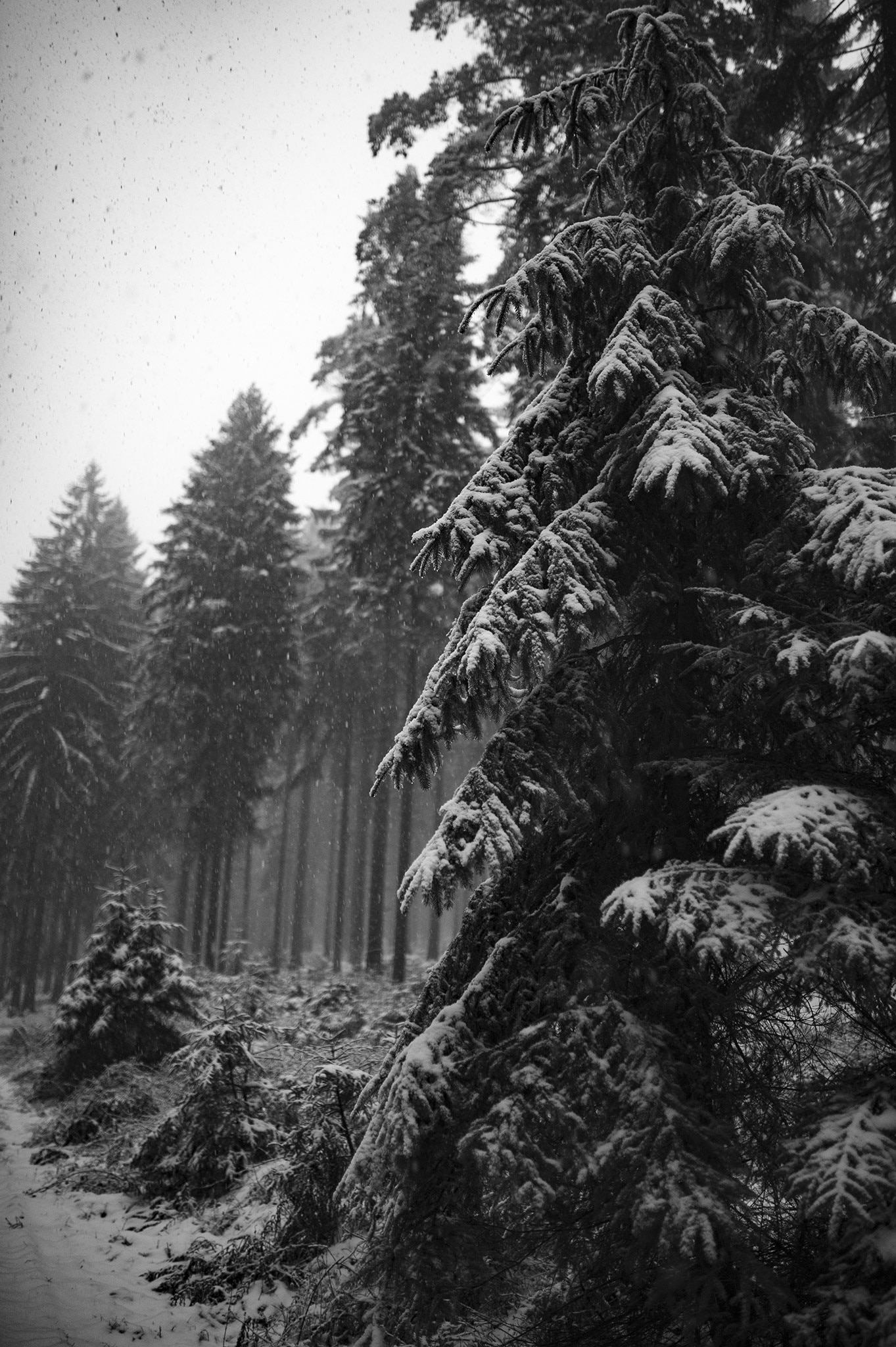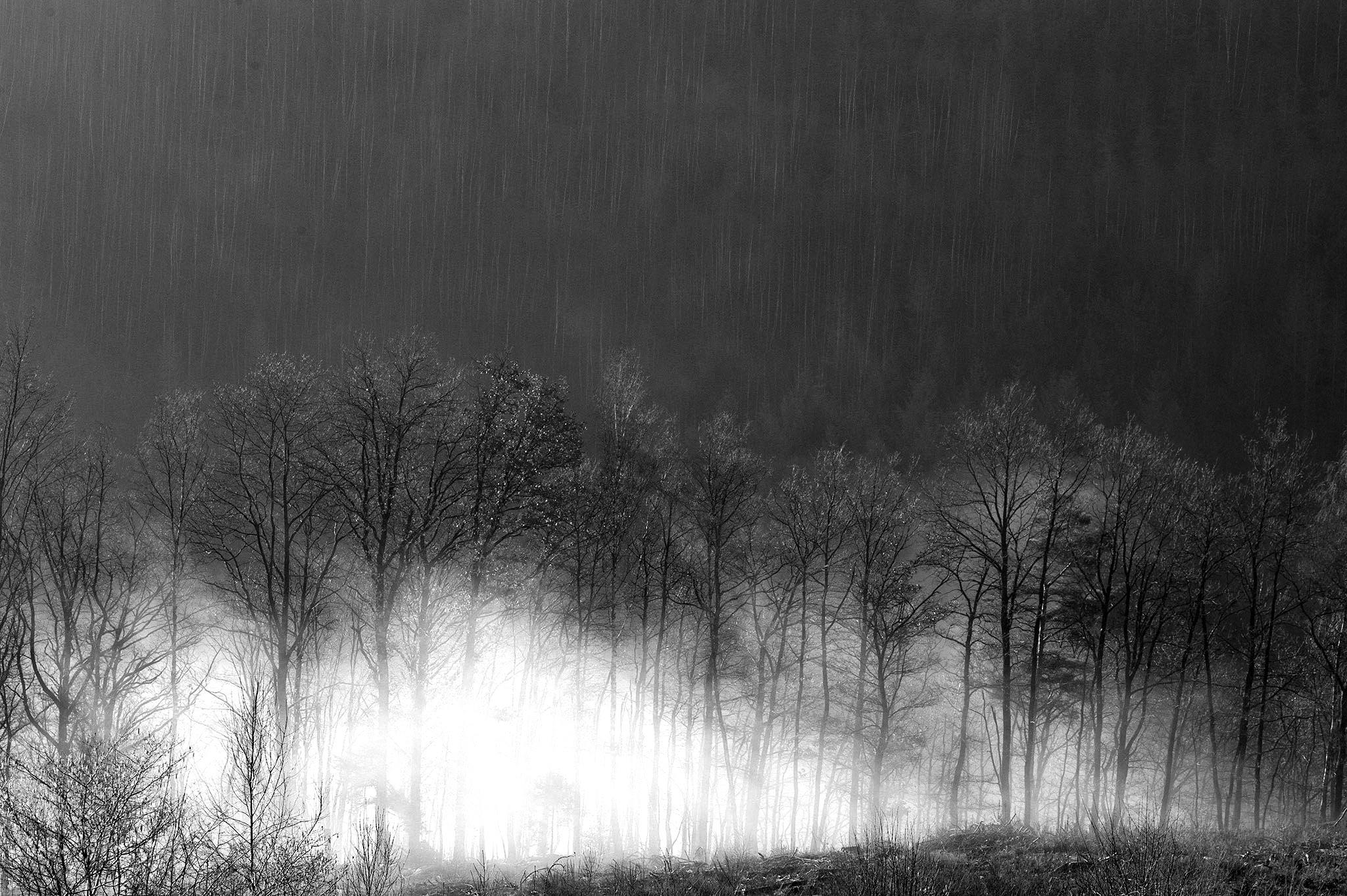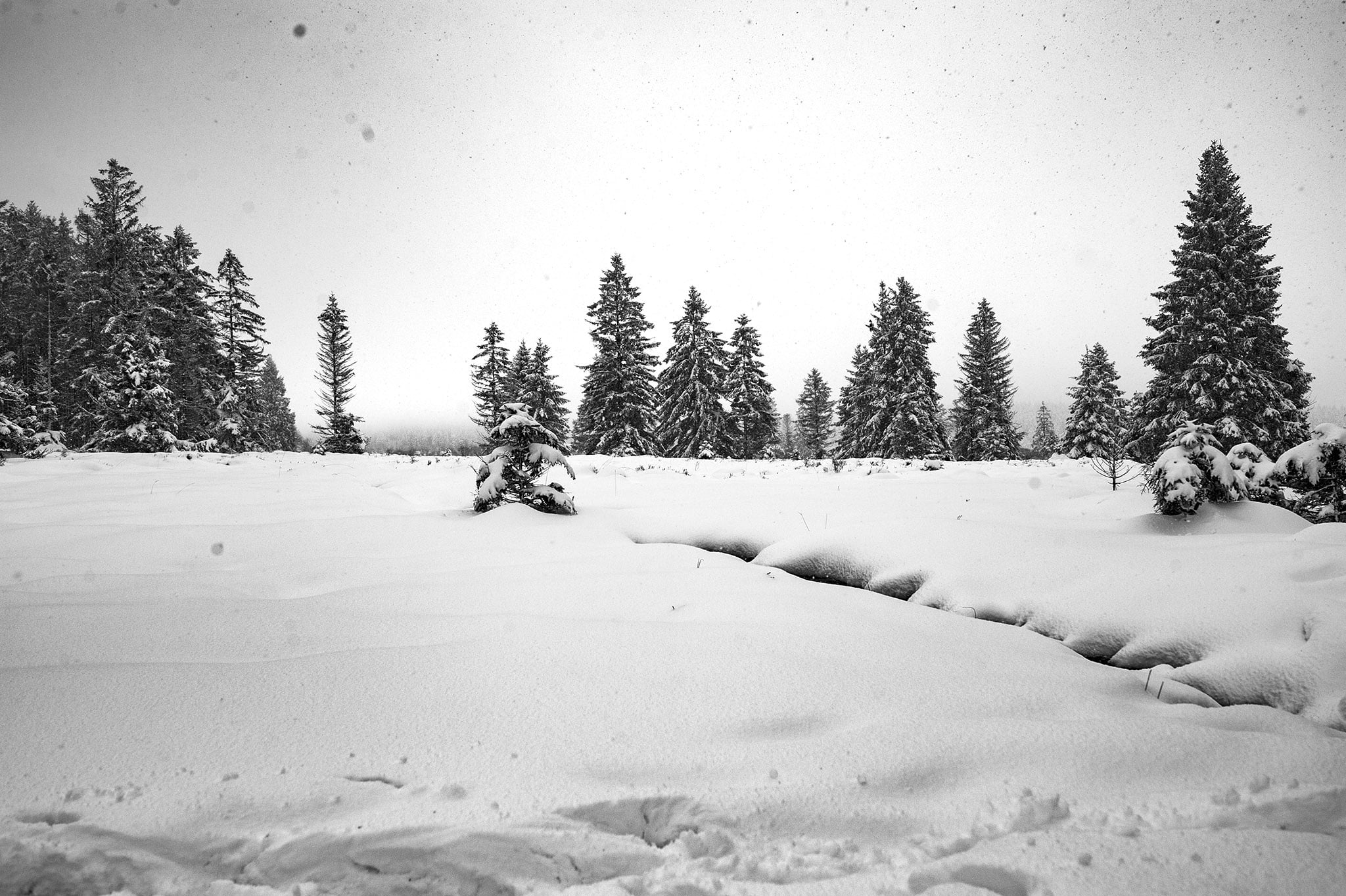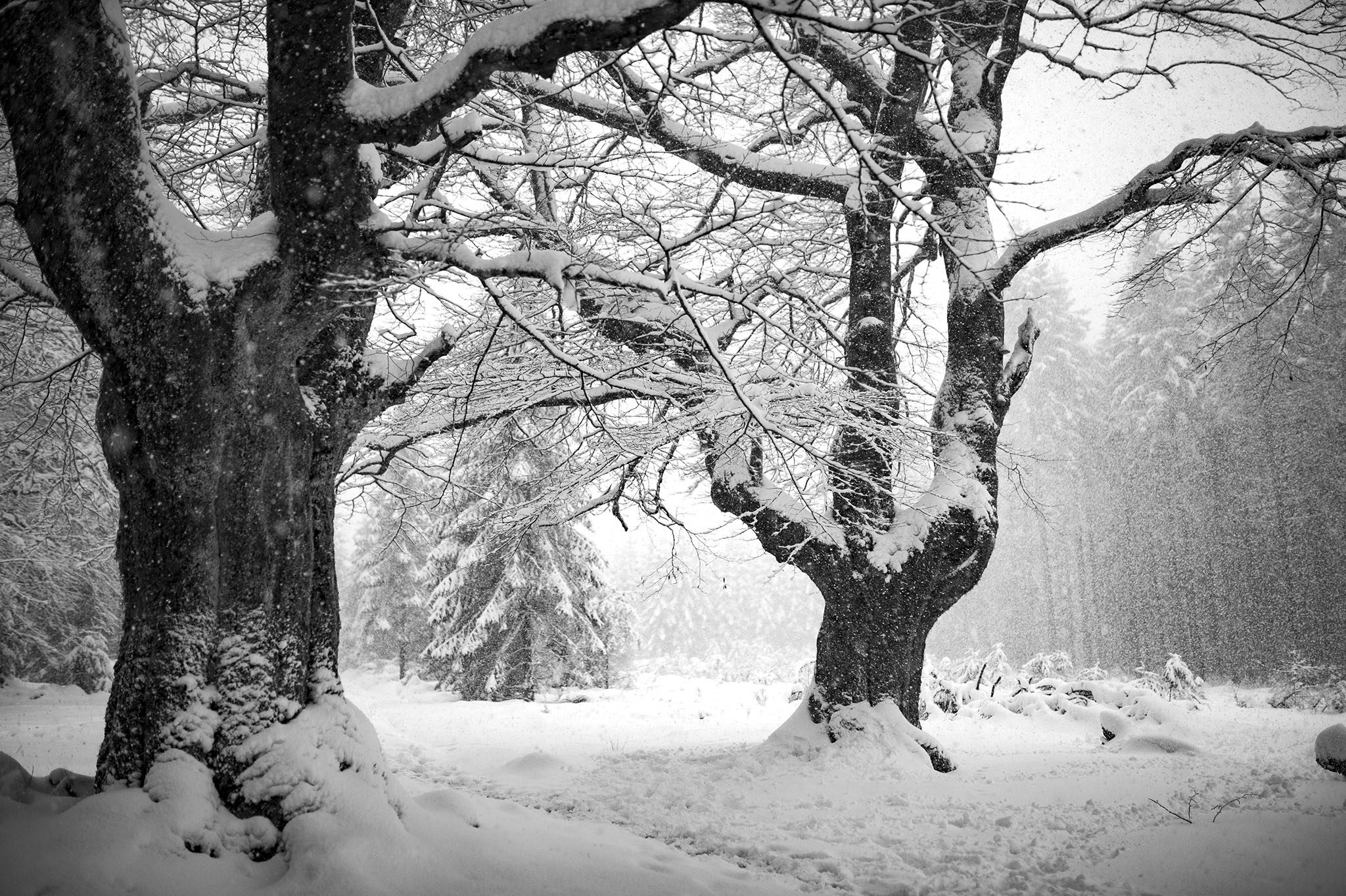 Le lendemain, après une nuit passée avec les voyageurs qui vont poursuivre leur Chemin, au Truc de la Garde, nous sommes seuls au cœur d’un hiver qui n’en finit pas sur les hauts plateaux du Mont Chauvet. 260 ans plus tôt, une immense battue est organisée dans les bois où nous nous engouffrons.