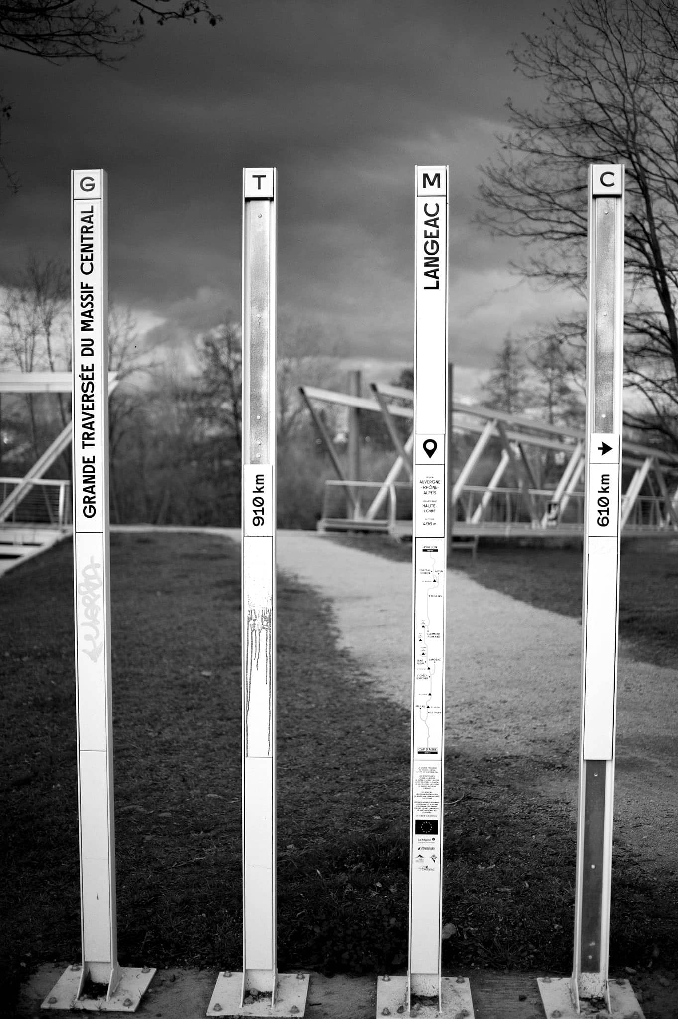- De Langeac au Sauvage, nous avons suivi la trace de la Grande Traversée du Massif Central (parcours de liaison), soit 61 km (2920 m D+). Le topo-guide la divise en deux étapes, Langeac-Saugues (33 km) et Saugues – Le Sauvage (31 km). Le balisage est présent mais pas toujours bien indiqué.