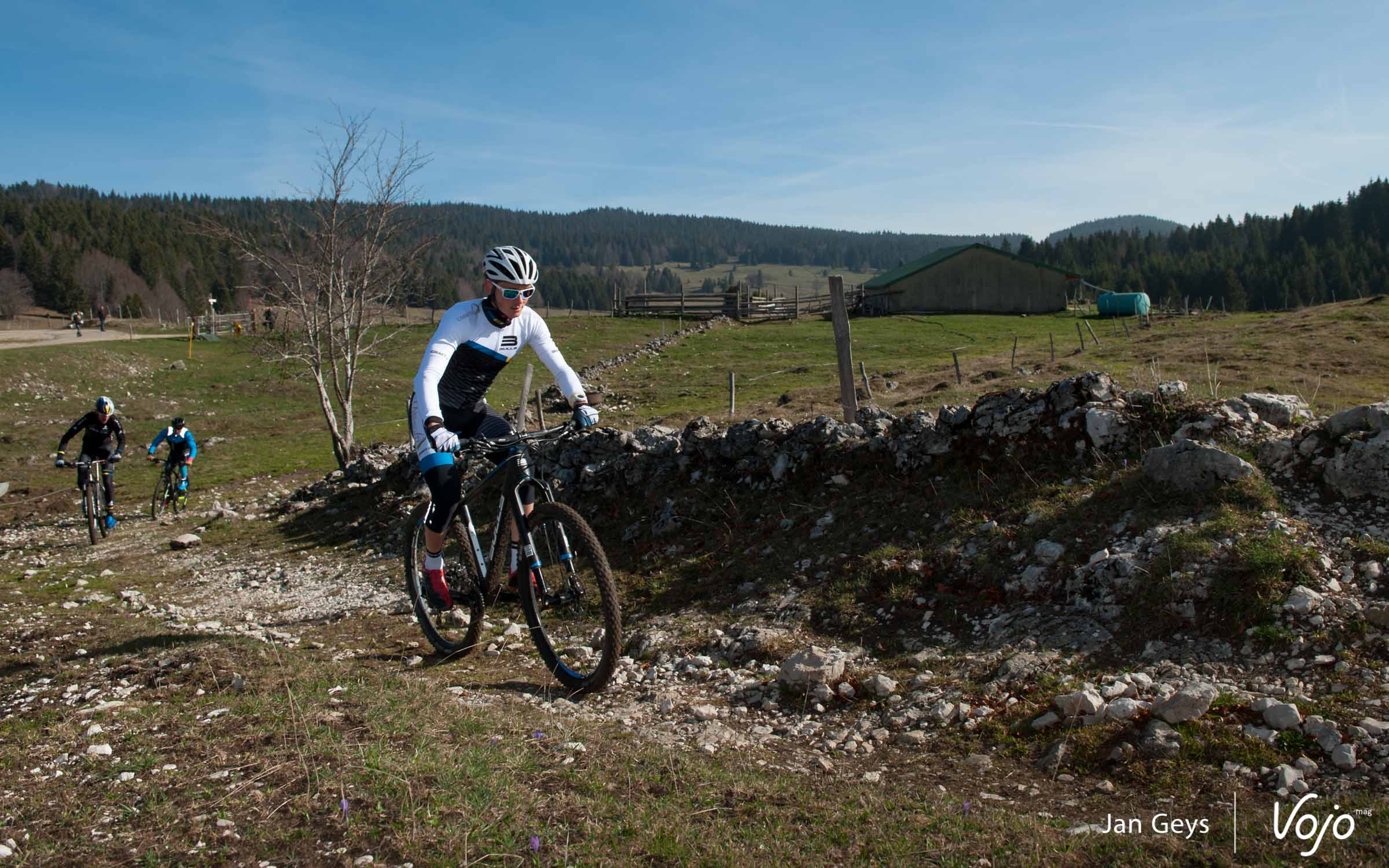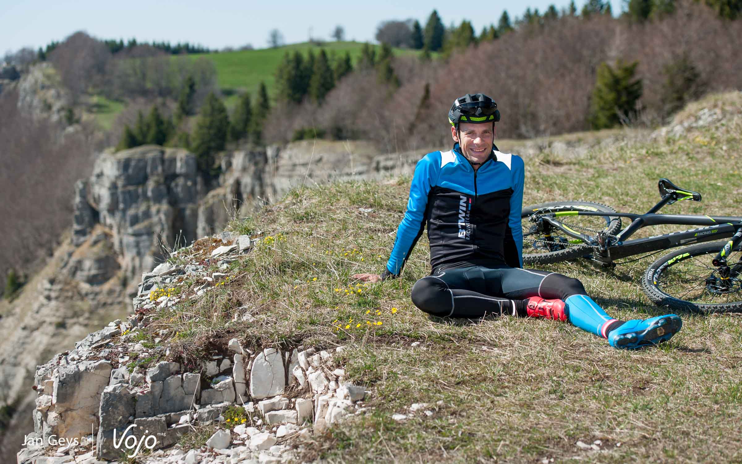 Sur la route vers la roche d’Orvaz, il est grand temps de faire la connaissance de l’autre chouchou du cyclisme français, à savoir Jean-Christophe Péraud. Vous savez, le numéro 2 du Tour de France 2014 et, dans un passé un peu plus lointain, un vététiste très doué qui a décroché la médaille d’argent aux Jeux de Pékin. En tant qu’ancien vainqueur de La Forestière, à deux reprises même, il était très heureux de pouvoir revoir les chemins du Jura.