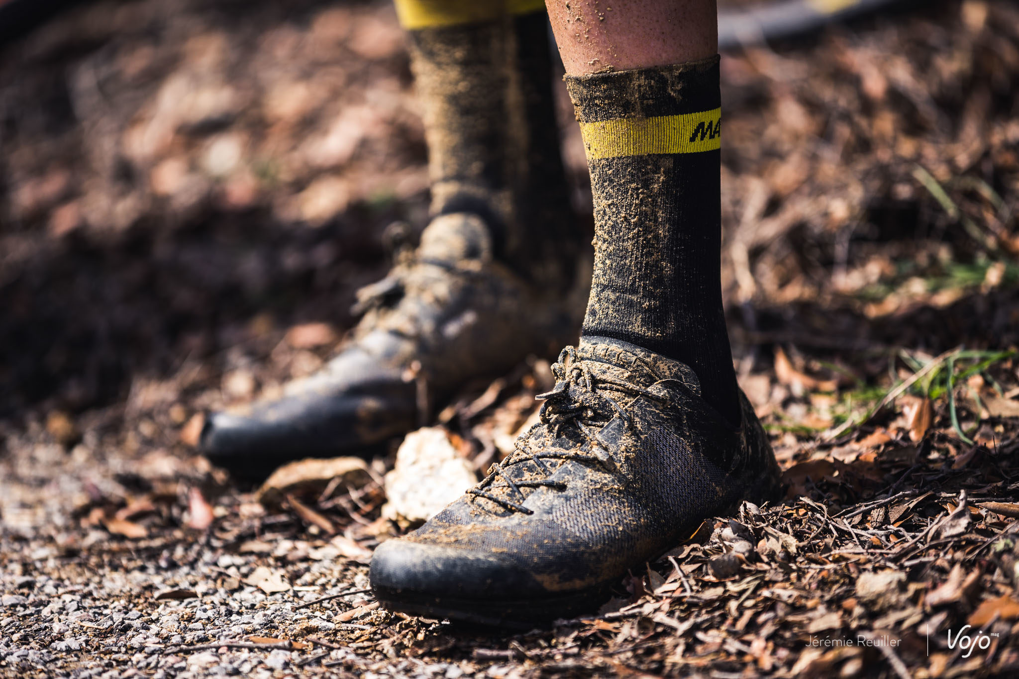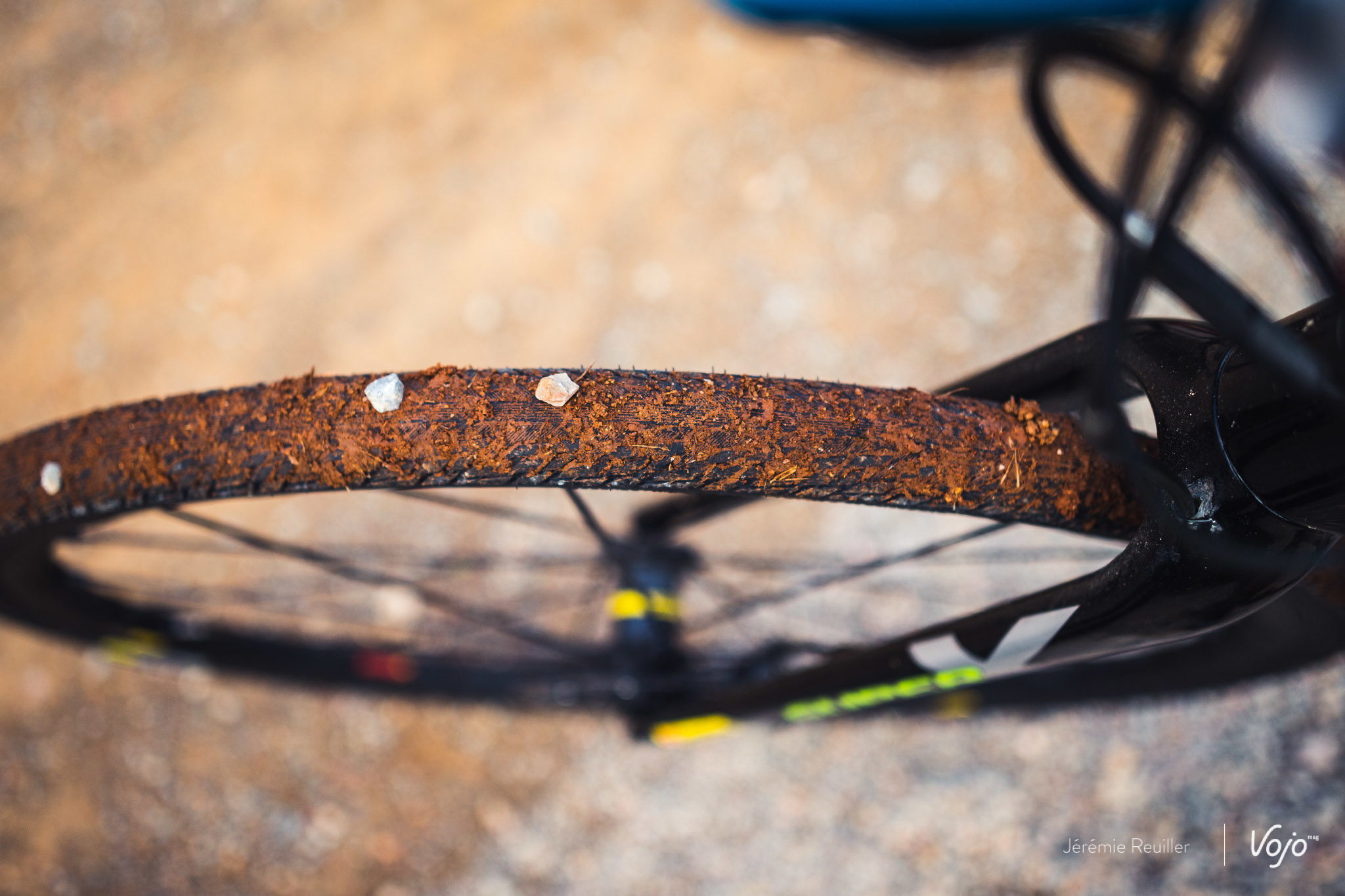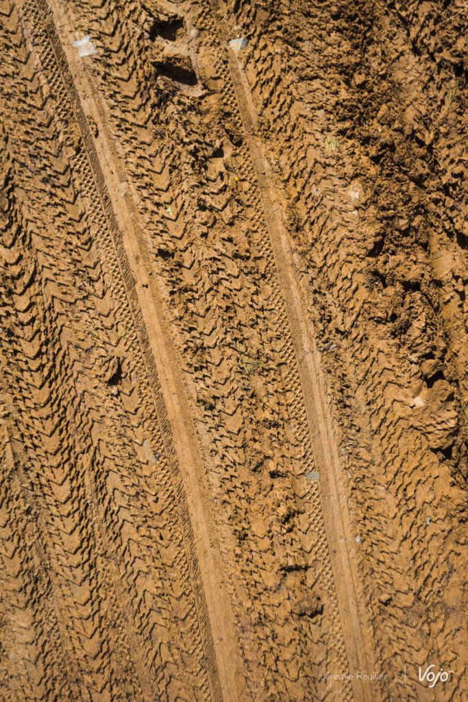 Dans la boue qui colle et rend aléatoires les arrivées au pied de longues descentes roulantes, de nuit, sur la pumptrack jouxtant l’atelier Caminade, dans les racines des singles gouleyants, sur les bords des canaux d’irrigation ou encore engluée dans la toute dernière portion dans les champs…