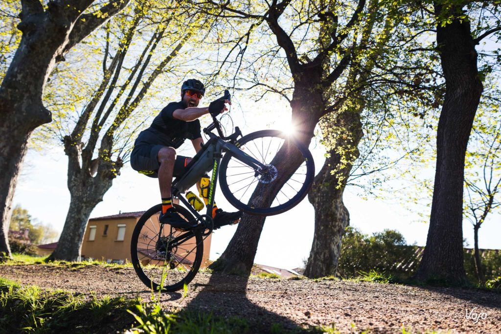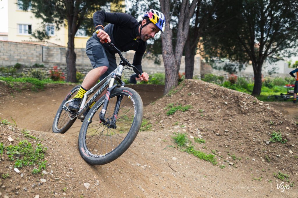 Surtout en compagnie de l’inventif trublion Kilian Bron, tout a été prétexte à s’amuser, à se challenger parce qu’avec des pneus aux sections si fines et en l’absence de suspensions de folie, mieux vaut soigner la trajectoire et le pilotage !