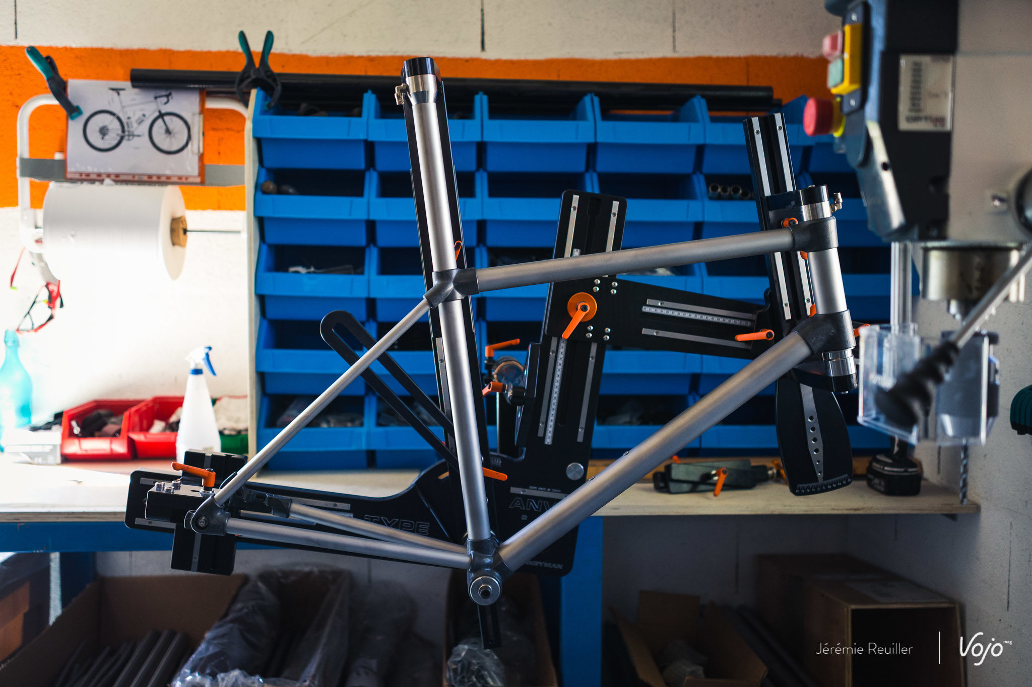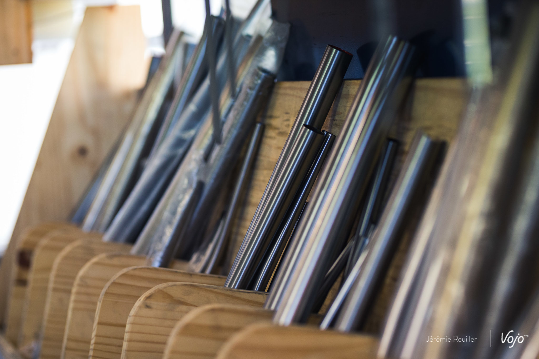 Pendant ces deux jours et au gré de ces 150 (160, 170 ? one ne sait plus très bien, on s’est adaptés à la météo, aux envies, et quand on aime, on ne compte pas, pas vrai ?) kilomètres de plaisir, nous avons poussé la porte de l’atelier Caminade. Et découvert leur nouveau bébé, qui rend le titane accessible !