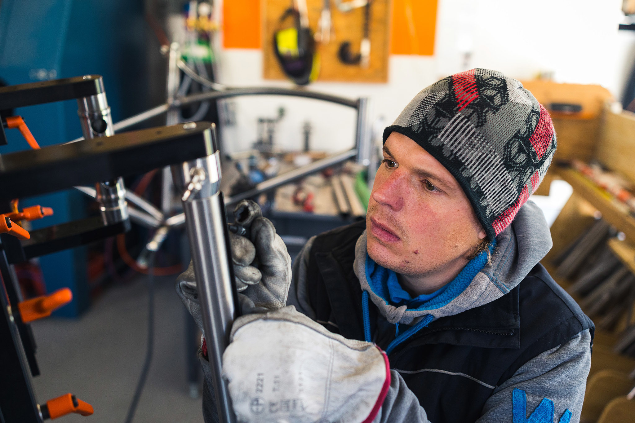 Les premiers pas dans l’impression 3D étaient faits. Ils ont permis à toute l’équipe de Caminade, – aujourd’hui passée du duo fondateur à 4 personnes, avec Mika, autodidacte génial qui soude acier et titane au TIG, et David, chargé du montage spécifique des modèles gravel AllRoad – de sortir ce titane pas comme les autres, qui mêle savoir-faire artisanal et haute technologie.