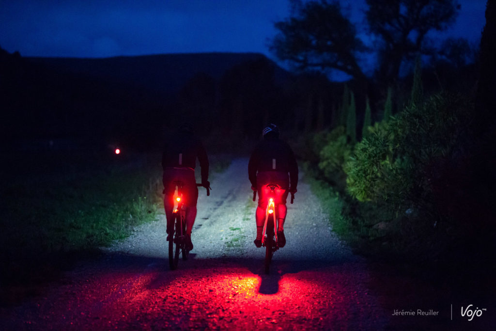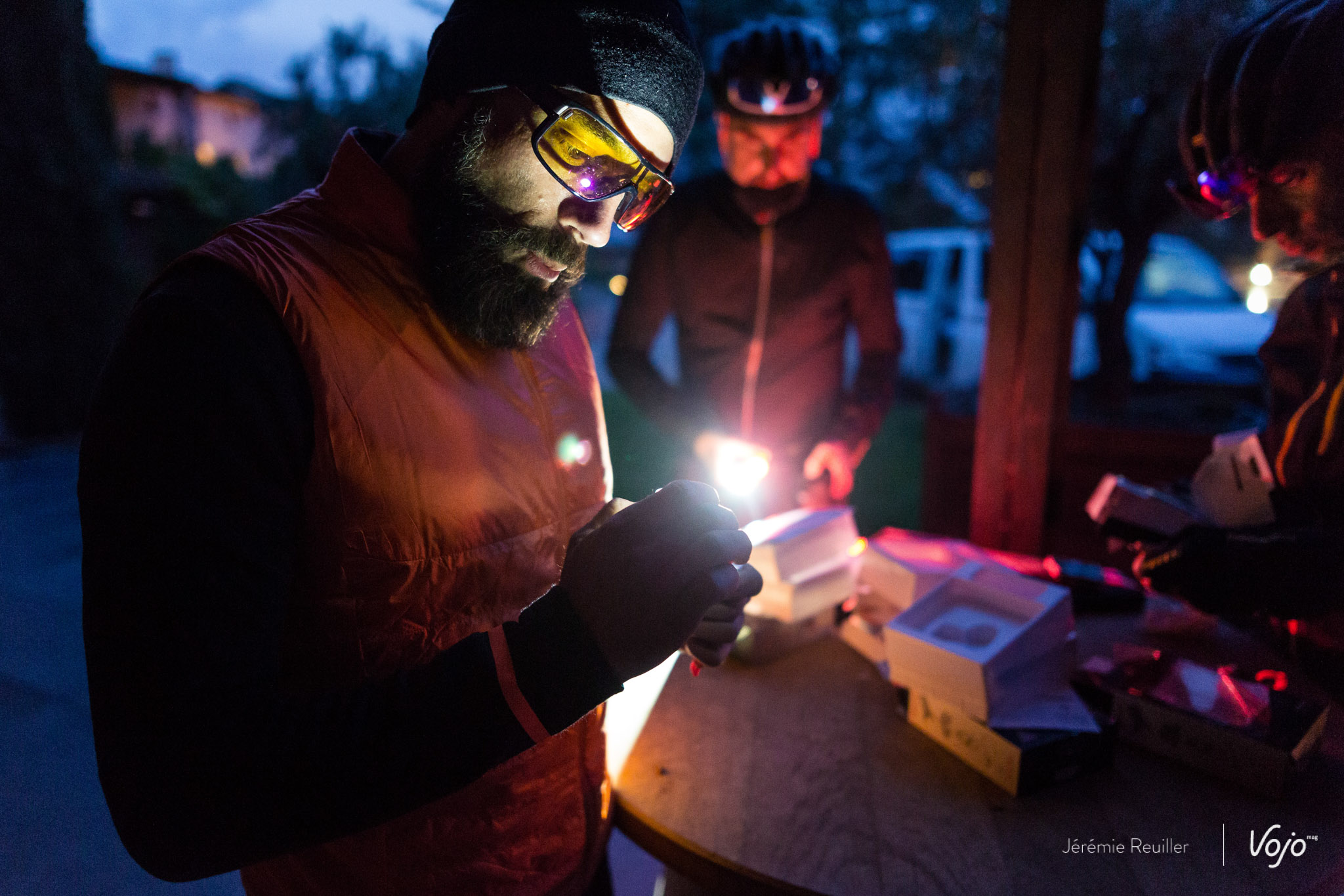 Morceau de bravoure inoubliable de ce trip : le roulage de nuit, à la lumière des frontales, le long du canal nous ramenant à Ille-sur-Têt. 20 kilomètres à rigoler sous quelques ondées, à improviser, pour faire durer le plaisir de rouler jusqu’au bout, à suivre la petite lampe rouge du vélo devant et à éclairer au mieux le chemin pour ceux qui suivent.