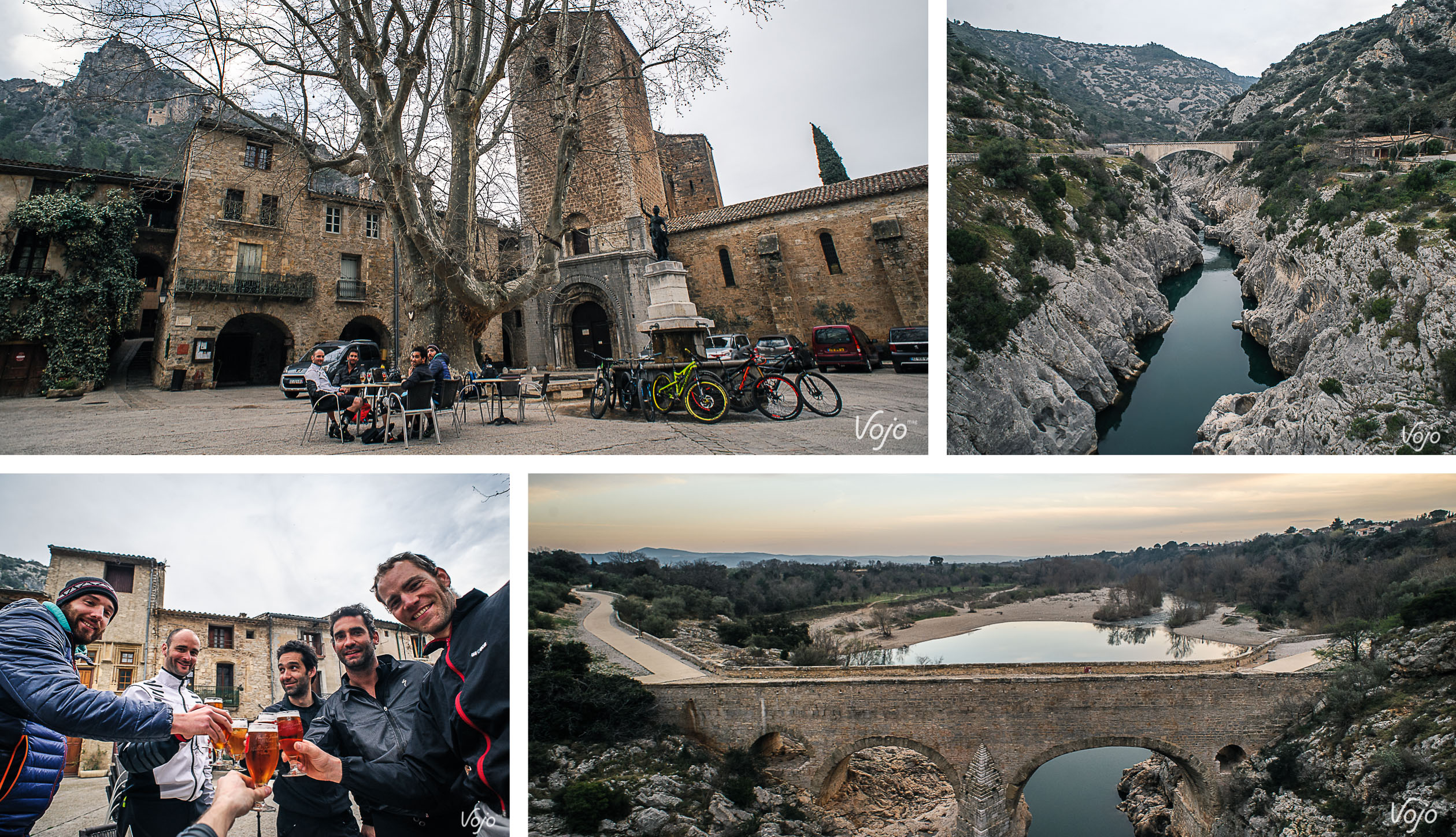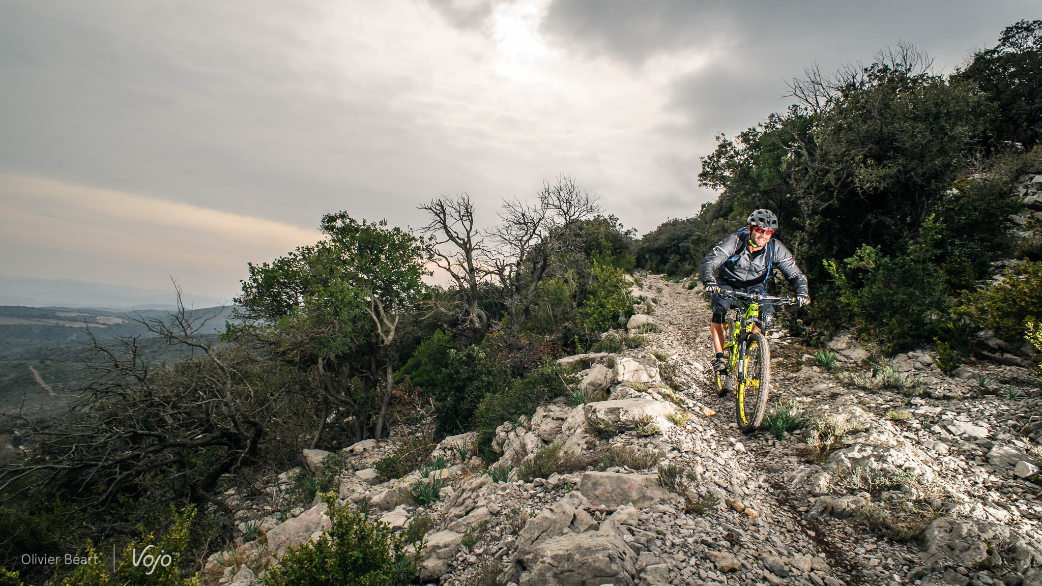 Et ce ne sera sans doute pas un détail car le terrain est exigeant. Au départ du Mont St-Bodile, sommet local surplombé d’une antenne relais et depuis lequel on peut apercevoir la mer (par temps clair…), c’est parti pour rejoindre St-Guilhem le Désert, petit village très reculé mais néanmoins très touristique. Sauf que par les chemins que nous allons emprunter, il y a peu de risque d’avoir du trafic !