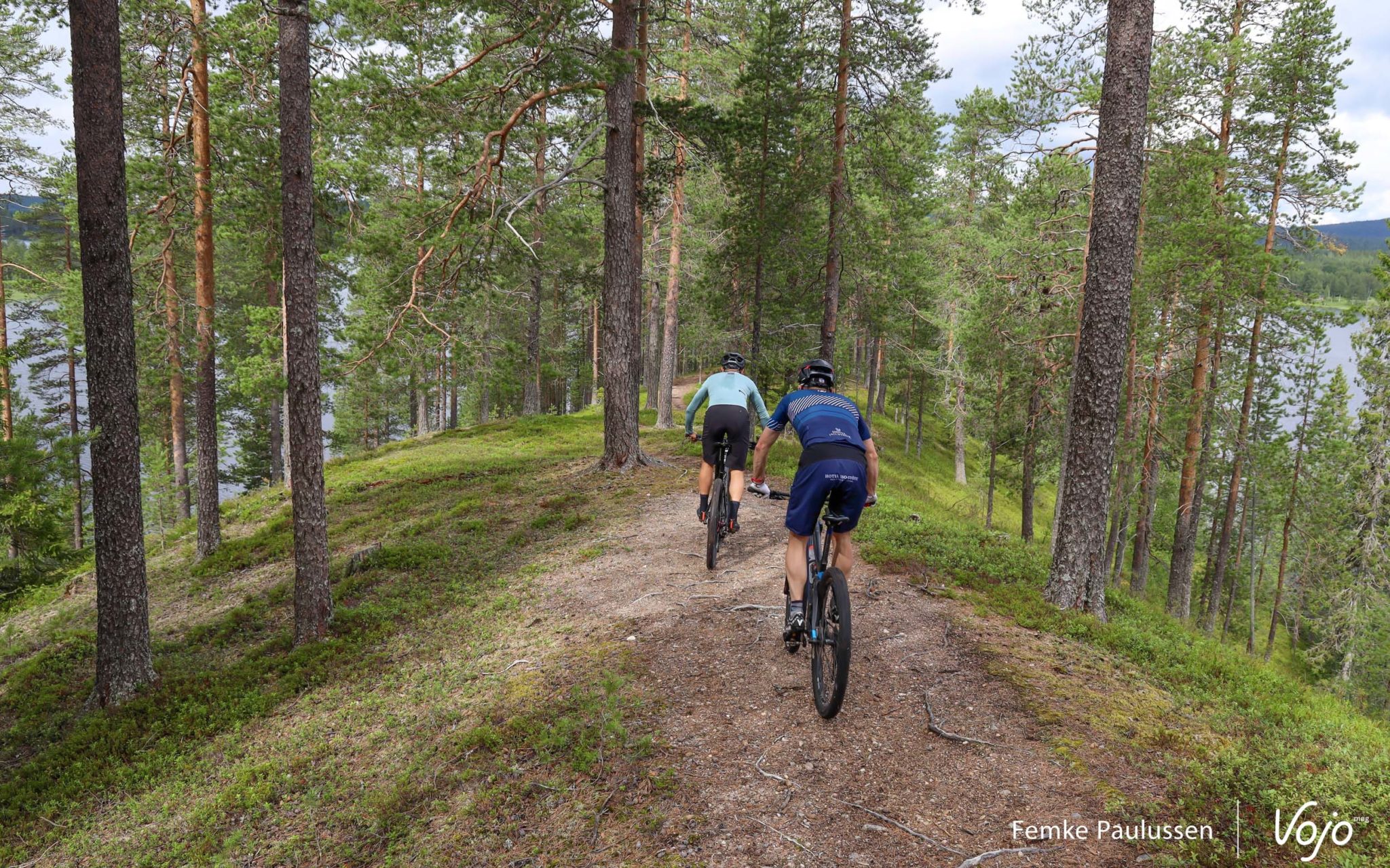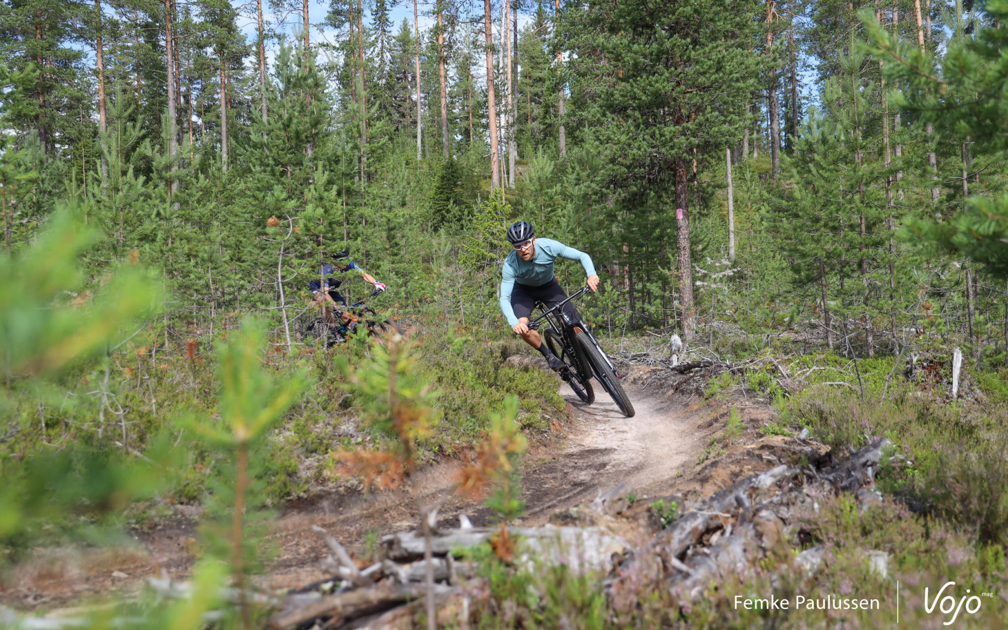 C’est avec une attention particulière que nous empruntons les jolis north-shores (comprenez là des petites passerelles faites en bois) nous permettant de traverser ces zones marécageuses (« suo » en finnois). « Restez concentré sur la piste, regardez droit devant vous et continuez à pédaler » nous rappelle notre guide Lieven. Son prénom suggère des racines flamandes et c’est le cas. Depuis l’an 2000, la Finlande est la résidence principale de cet homme à la recherche de liberté. Nous avons une confiance aveugle en sa connaissance du terrain pour nous faire découvrir les plus beaux coins de ces vastes forêts. Notre seul souhait est de profiter pleinement des singletracks et de vivre le plus longtemps possible le moment présent.