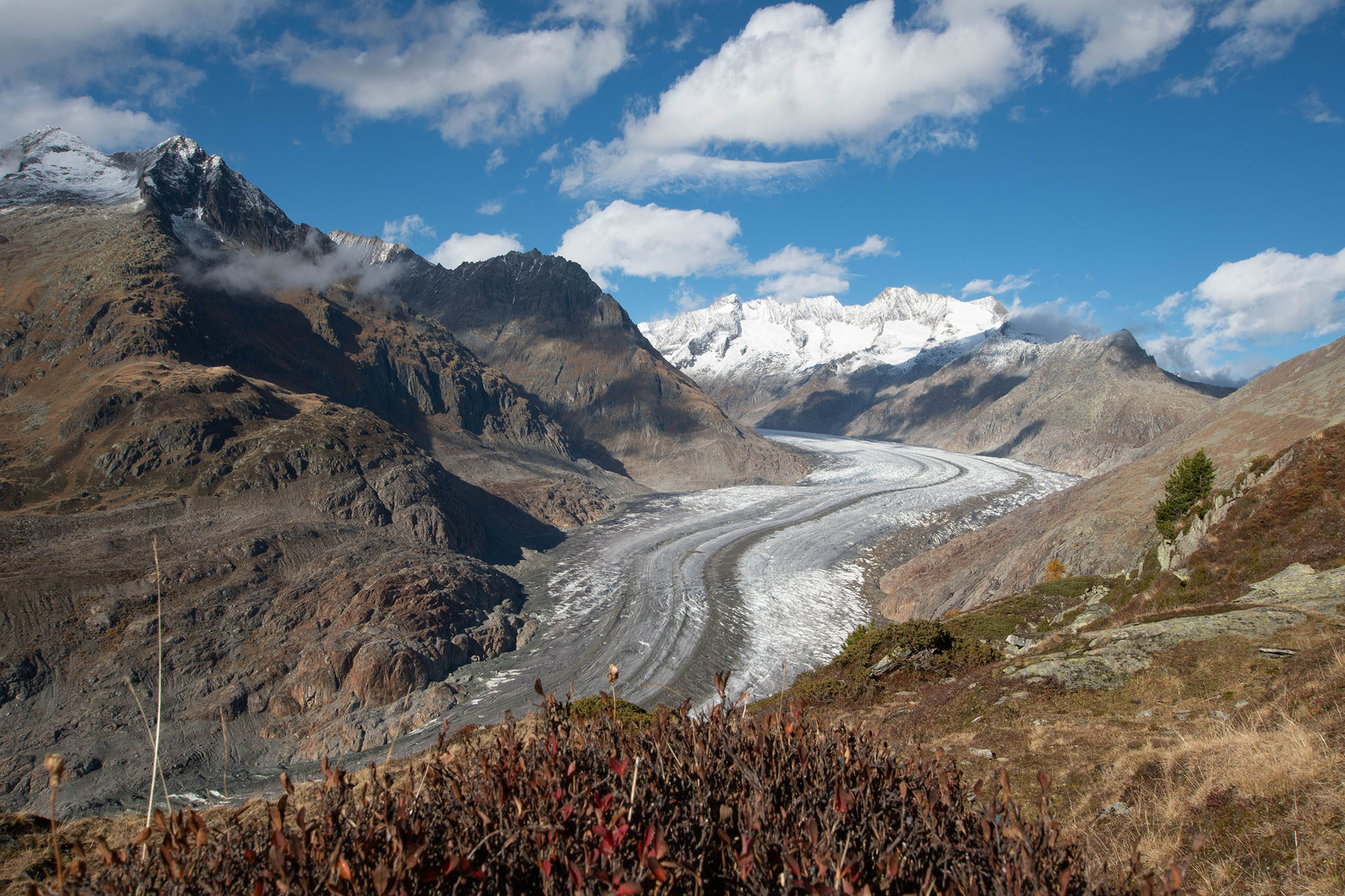 Malgré sa masse de 11 milliards de tonnes, il ne cesse de réduire son volume. Il y a 18.000 ans, la crête montagneuse reliant le Bettmerhorn et le Riederhorn était encore recouverte de glace et la langue du glacier touchait la vallée du Rhône. Mais ici comme ailleurs dans les Alpes, il a reculé et son temps est désormais compté à l’échelle chronologique de la terre.