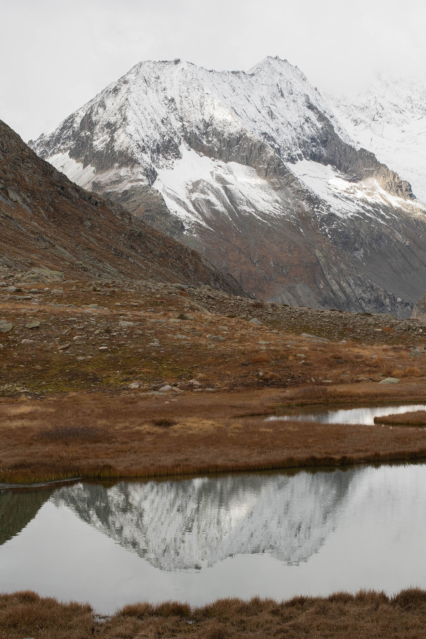 Les vététistes de l’automne sont des chanceux. Les touristes partis, la montagne a retrouvé sa sérénité. Les chemins et les sentiers nous semblent maintenant réservés. La fin de saison permet une dernière fois d’admirer les plus beaux contours et les plus beaux sommets de l’Aletsch Arena où se situe le plus grand glacier des Alpes. Notre espoir est de pouvoir profiter des derniers jours avant le passage inaccessible des cols bloqués par la neige. Il nous tarde d’aller à la rencontre du géant de glace.