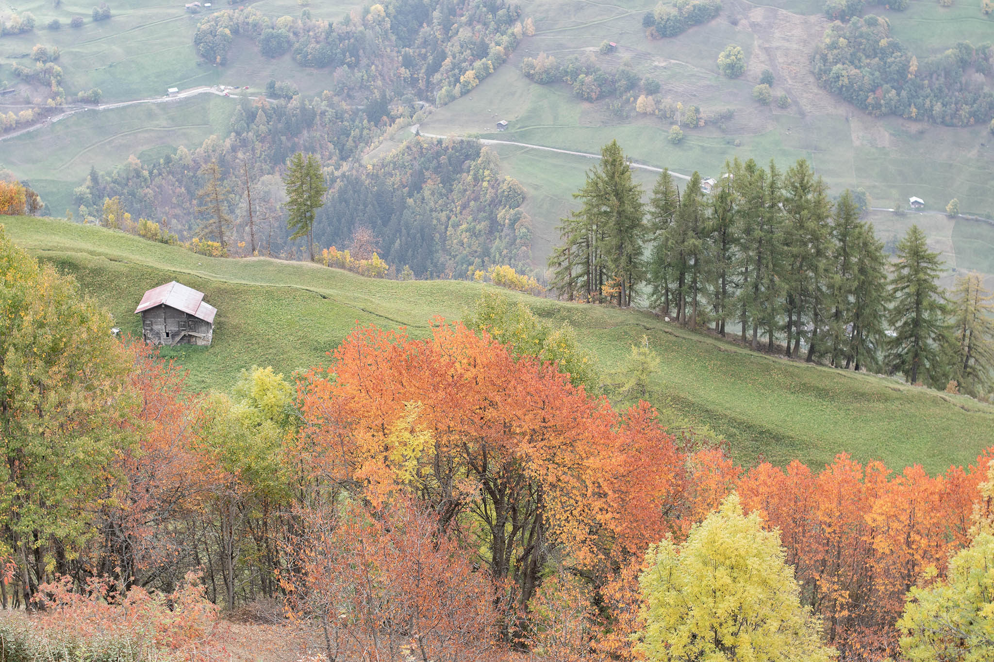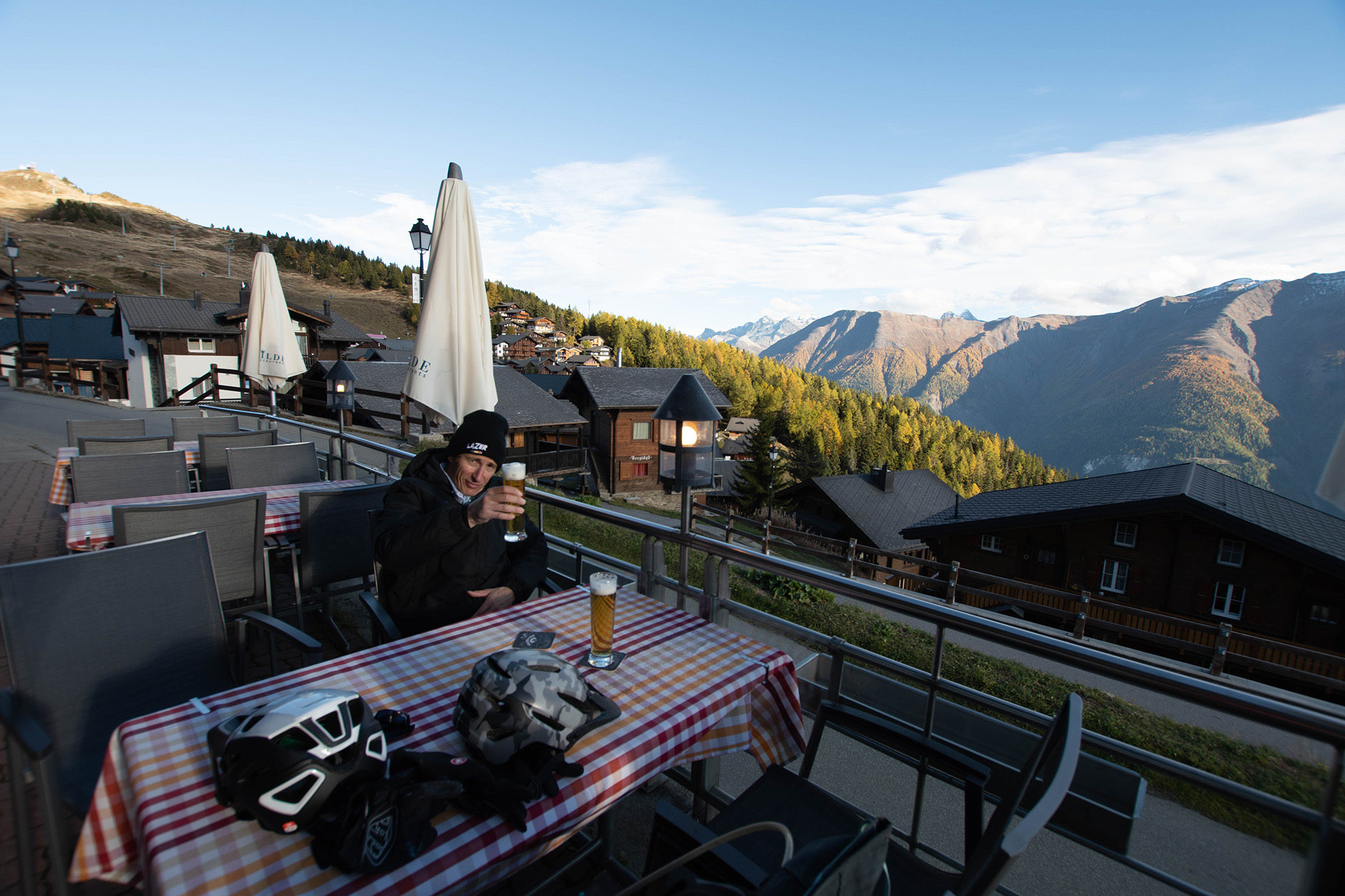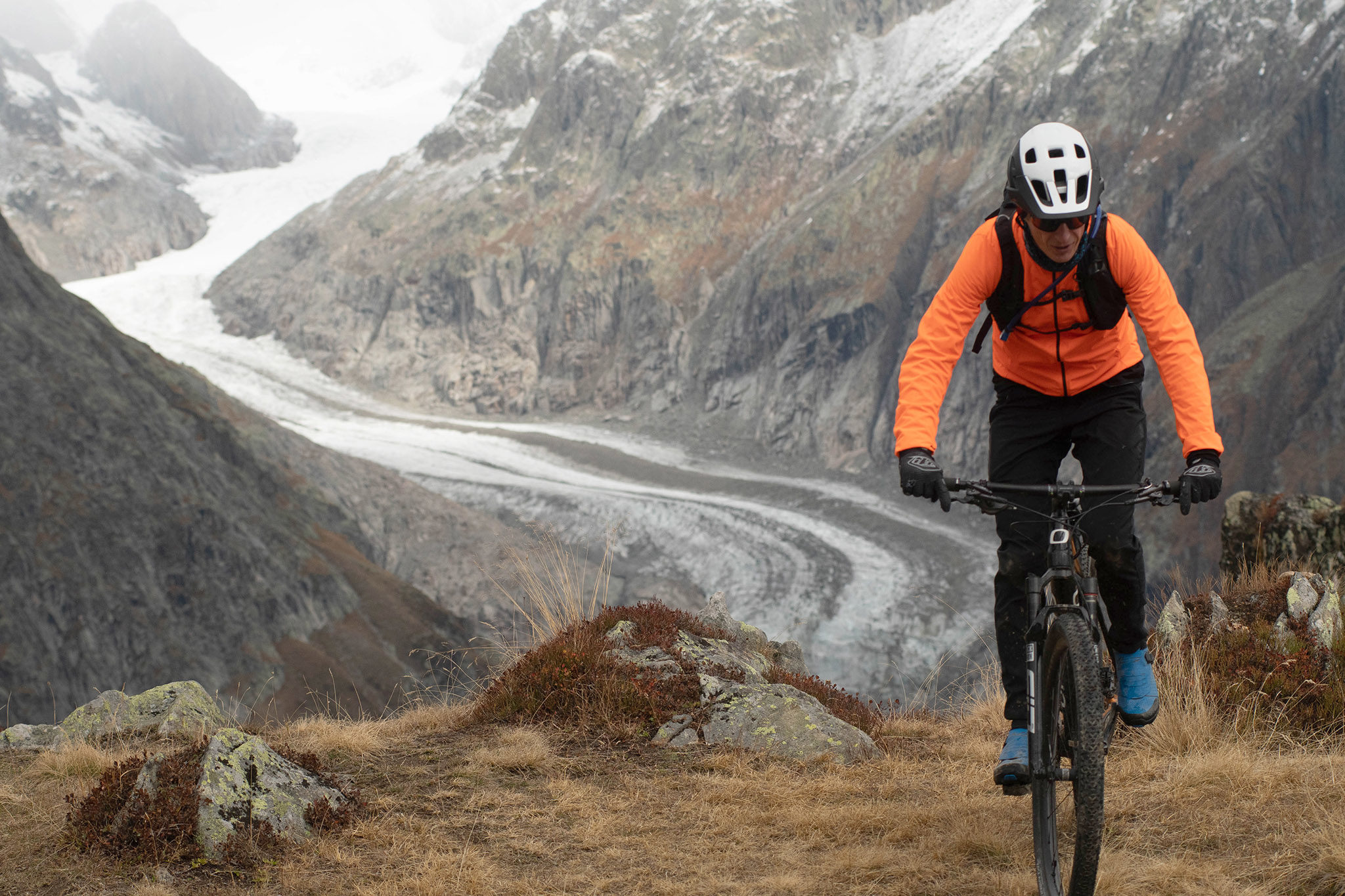 La lumière dure du soleil de l’été s’est adoucie depuis quelques semaines dans le Haut-Valais et elle illumine les versants de la montagne de tonalités chaudes et diffuses. En altitude, les vaches et les brebis sont redescendues suite au premier coup de froid. Dans la région de l’Aletsch Arena, doucement la fin de saison approche. Cette période est l’occasion d’aller capter les ambiances d’automne et de rouler dans un environnement grandiose.