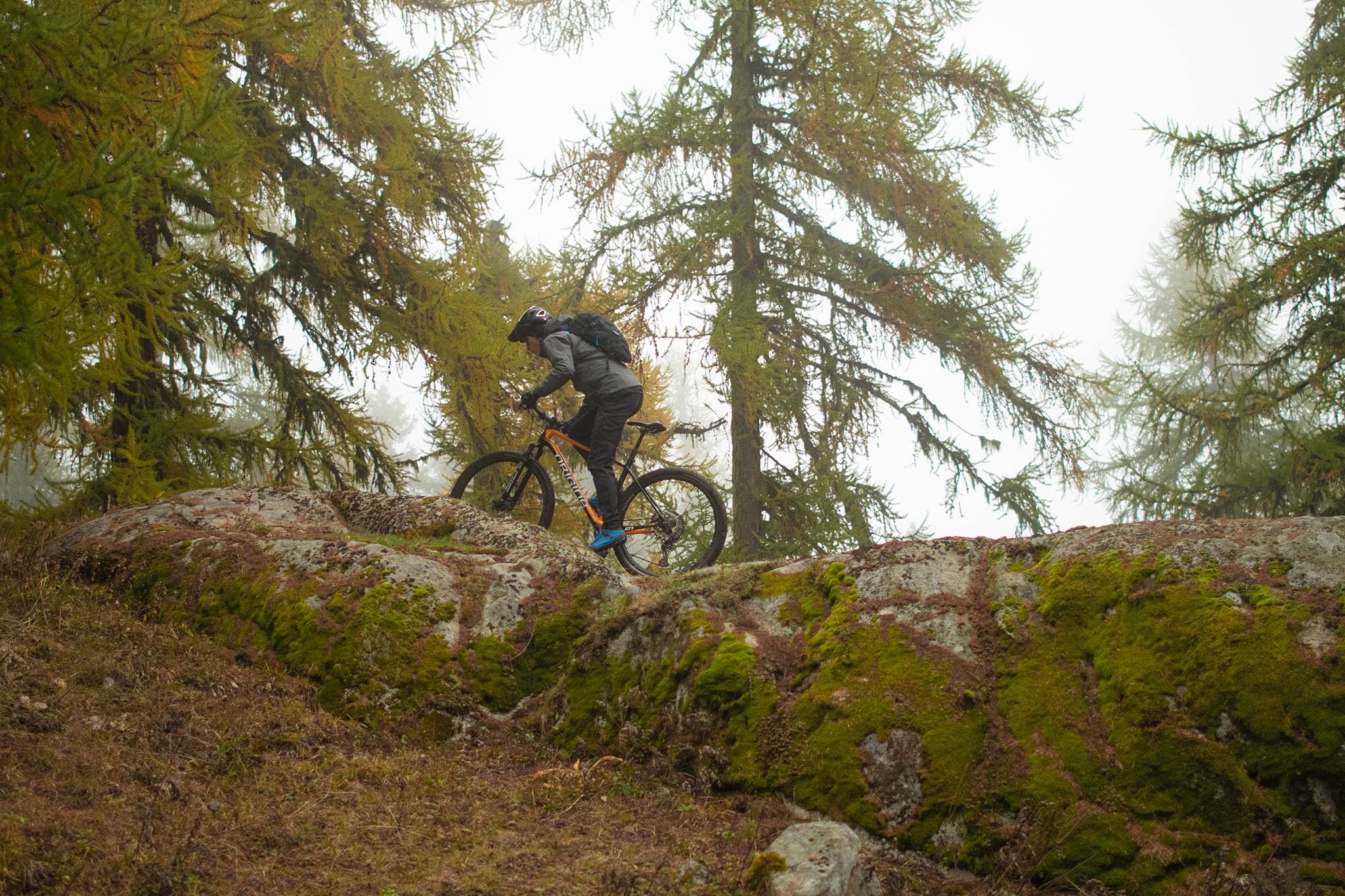 En roulant sur le singletrack, il est difficile de ne pas ressentir ce vide, cette force de la nature qui nous écrase. Le sentier est magnifique et est en surplomb sur toute la vallée. La trace n’est pas difficile mais le décor aux alentours impressionne et capte plutôt le regard à gauche au lieu de se porter devant la roue avant.