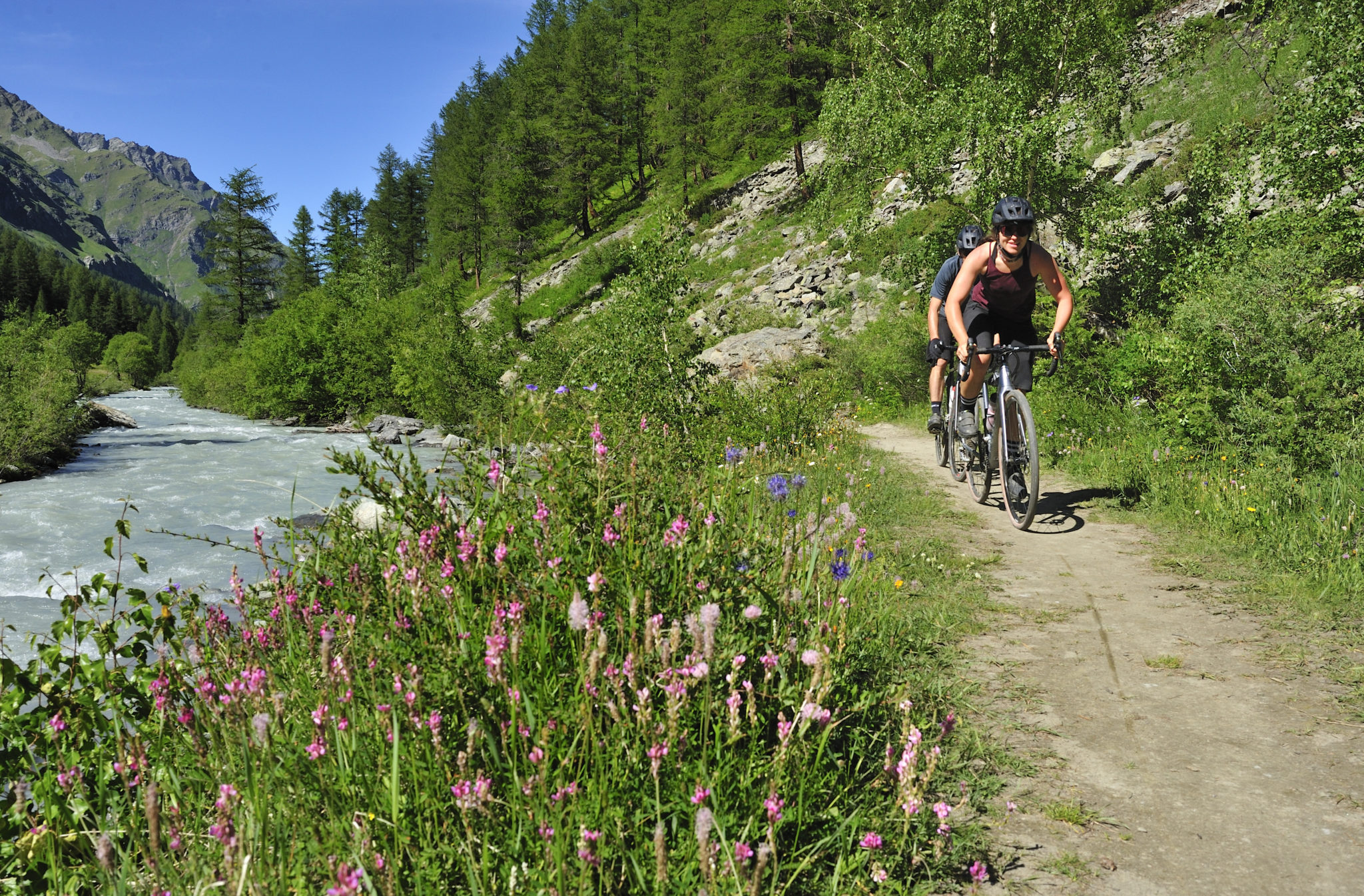 Les plus belles portes pour rentrer dans le massif sont celles qui nous sont données par les vallées de Valgrisenche, de Rhêmes et de Valsavaranche. Trois vallées et trois identités fortes que nous nous sommes empressés de découvrir en gravel, en compagnie de Vincent et de Morgan. Contrairement au parc frontalier de la Vanoise, au Grand Paradis le vélo est autorisé.
