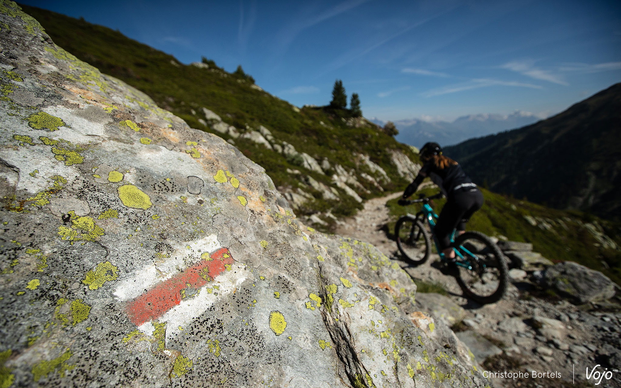 On doit donc un peu chercher son chemin et sortir régulièrement sa petite carte pour vérifier qu’on est bien au bon endroit. Pour ceux que cet aspect « aventure » rebuterait, les traces .gpx sont téléchargeables sur le site du bikepark de Verbier et l’Office du Tourisme loue des GPS sur lesquels se trouvent les itinéraires.