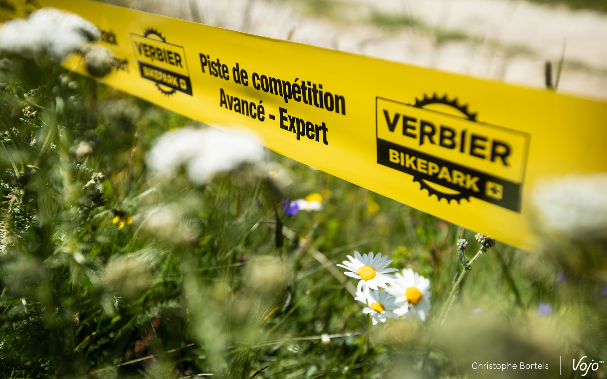 Contrairement aux traces enduro, les DH sont parfaitement balisées et il est impossible de se tromper : elles sont toutes agrémentées de tape coloré correspondant à leur difficulté. Bien pensé !