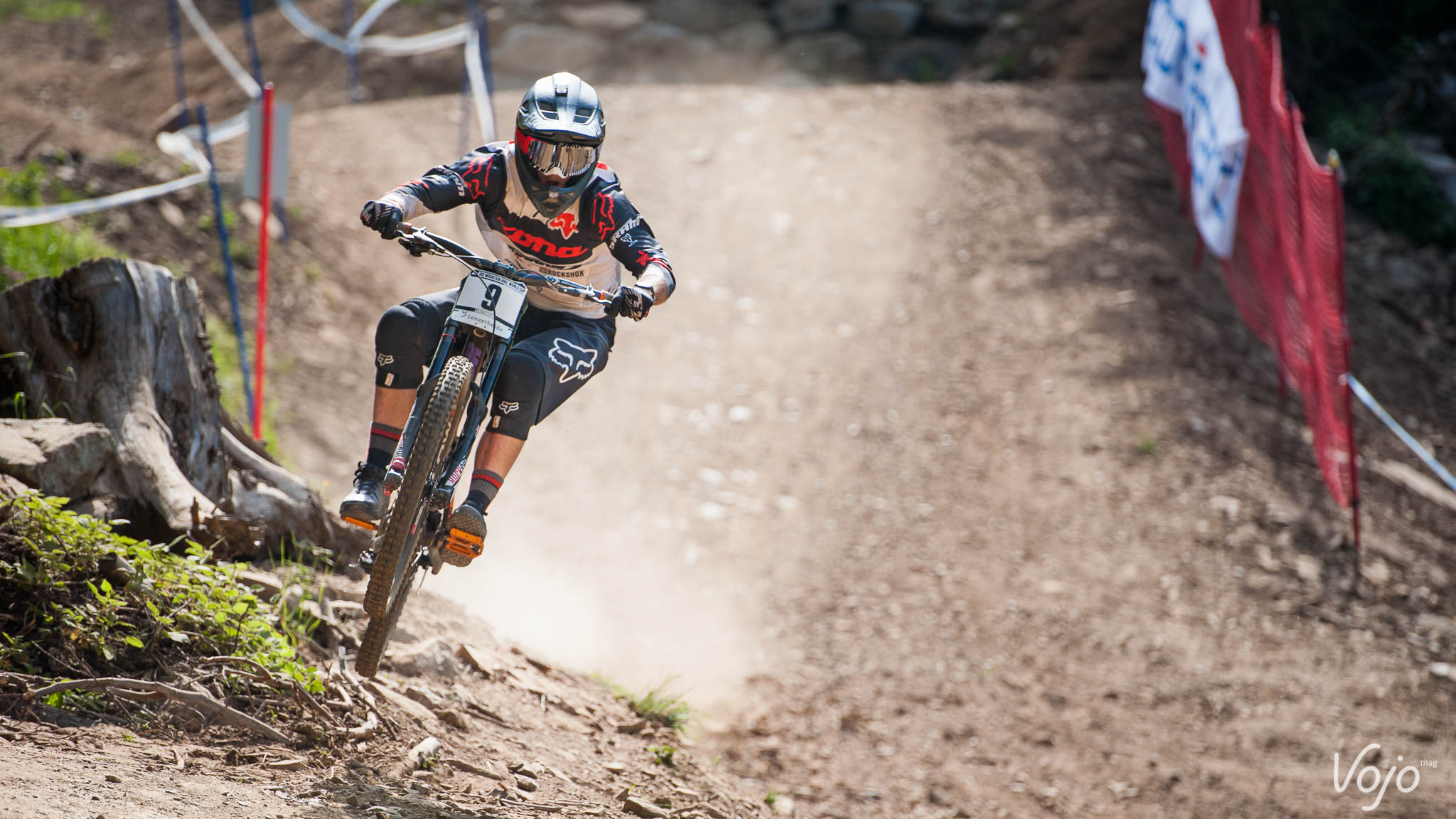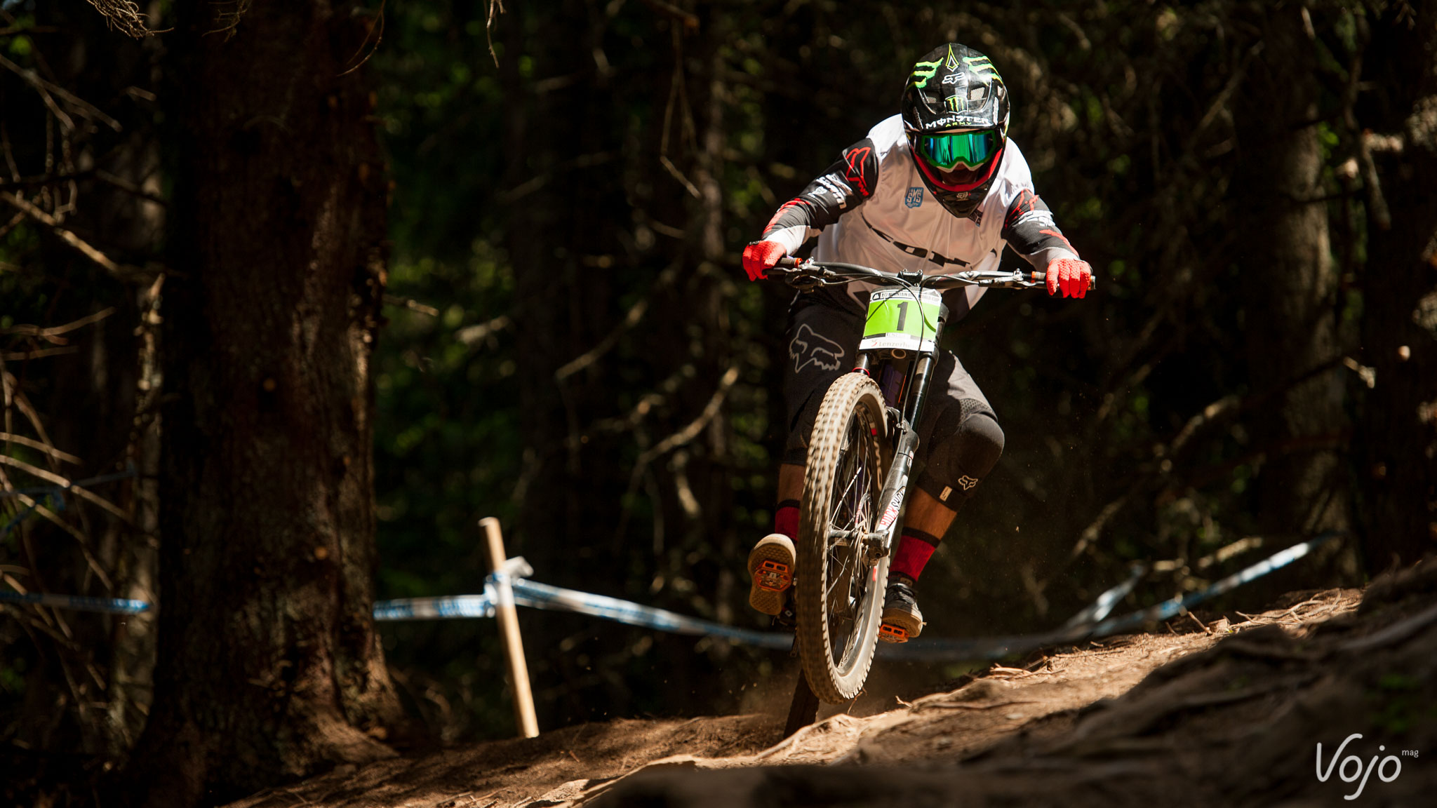Connor Fearon était chaud comme la braise après sa superbe 2e place à Leogang et son 3e temps aux qualifs ! Trop chaud même… 2e au premier intermédiaire, il a chuté sur le délicat petit drop dans les bois et termine 77e et bon dernier.