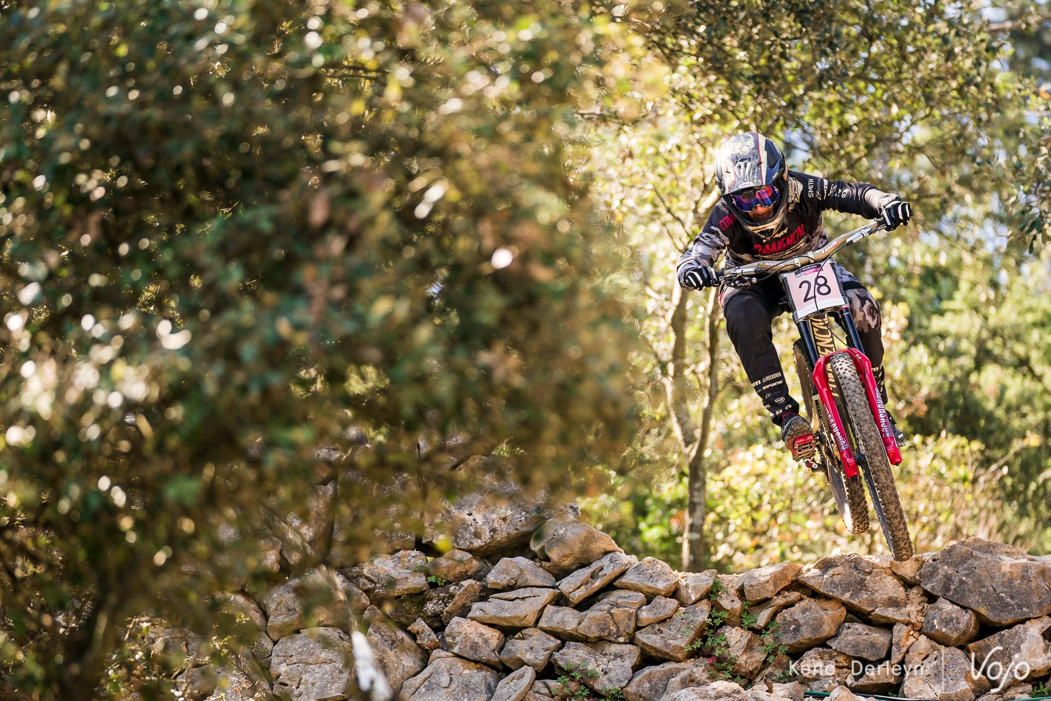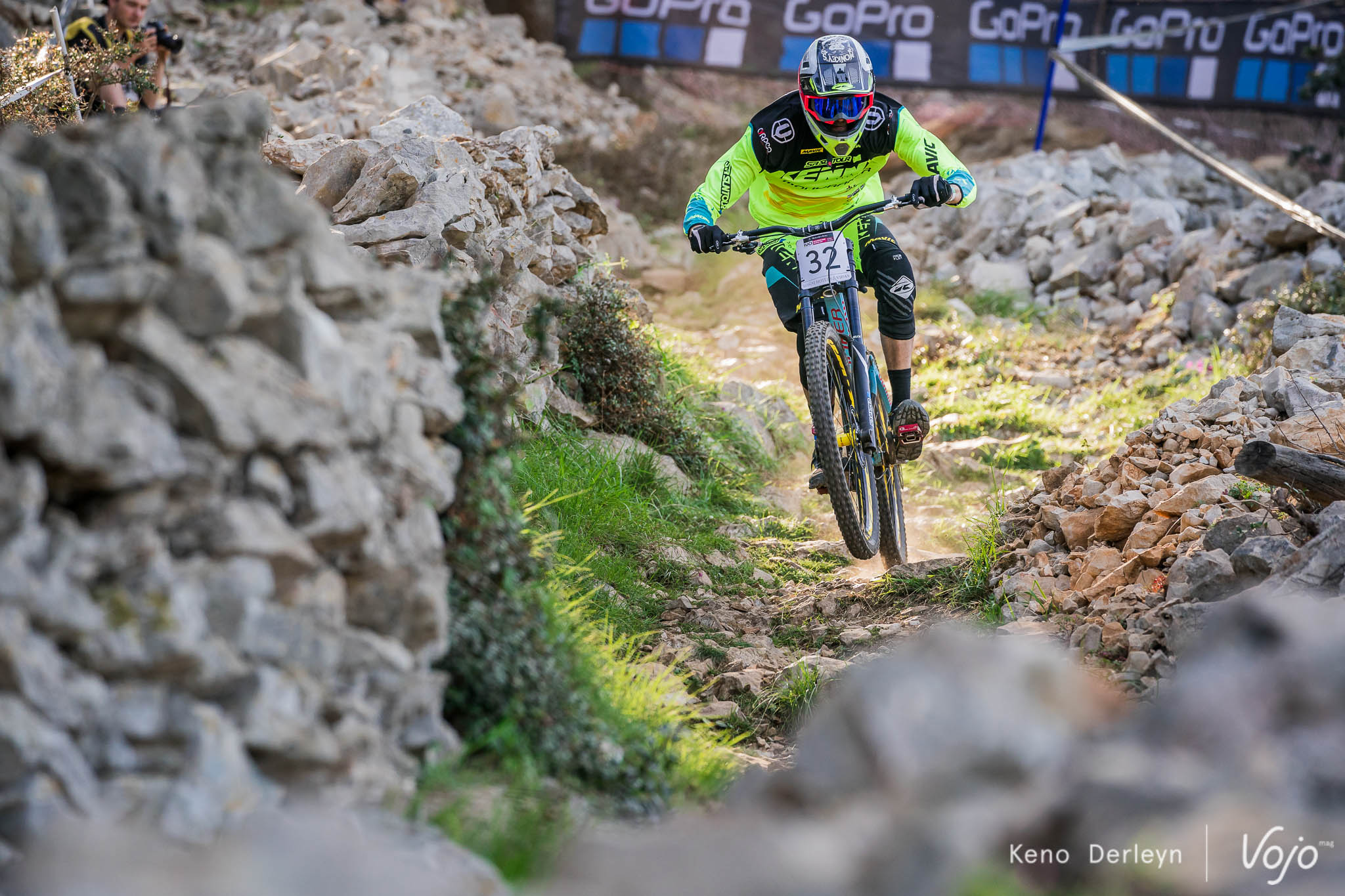 Quand on lui a demandé qui l’a déjà impressionné, Loris Vergier a fait partie de ses réponses. Par chance, nous l’avons croisé en fin de journée et voici ce qu’il nous a déclaré : « Je pense qu’on était tous excités ce matin. On avait tous de la testostérone à bloc pour montrer ce qu’on sait faire, du coup on est beaucoup à s’être lancés à bloc, et plusieurs d’entre nous se sont fait mal. Alors là pas le choix, il faut se calmer parce qu’entre les cailloux qui roulent, les drops un peu chauds, tout ça commençait à aller un peu vite ! Il faut un peu gérer au mental. Niveau matos ce n’est pas non plus évident car pour avoir du grip il faut que les pneus soient relativement mous mais il y a des sauts avec des réceptions bien à plat donc c’est un vrai bordel ! Je n’ai pas crevé mais ce n’est pas pour autant que je me sens épargné car même le plus petit rocher peut être fatal ! En fait, quand tu ne sais pas où tu mets les roues, il y a une chance sur deux pour que tu crèves ! ».
