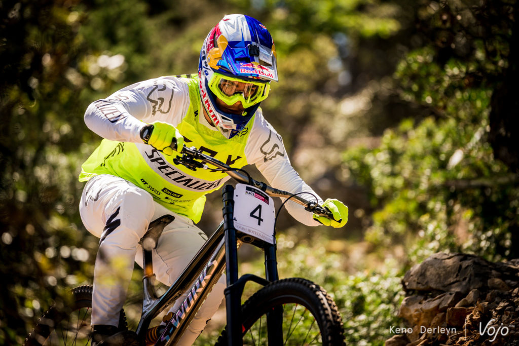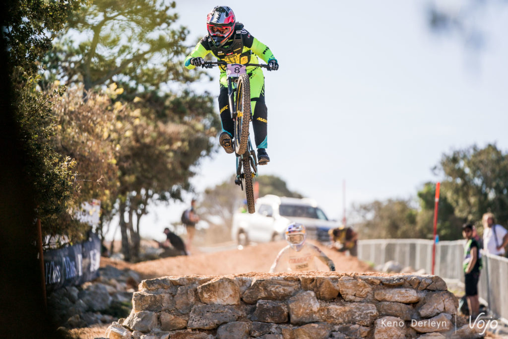 Manu Hubert complète : « C’est clair qu’ici ce n’est pas une piste comme on peut voir ailleurs, comm par exemple à Leogang, où c’est lisse comme des culs (sic !). En moyenne sur une Coupe du Monde, les pilote roulent à 40km/h. Là, on va être plus bas et, du coup, il y a une certaine frustration chez les pilotes. Après, j’avoue qu’il aurait pu y avoir un peu plus de préparation de piste pour qu’il y ait moins des roches super pointues et que les vélos soient moins bloqués. Ce sont des bricoles mais c’est évident, à la vitesse où ça roule, ça risque de casser. Après ce qui est bien c’est que ça offre autre chose que ce qu’on a l’habitude de voir et c’est ça qui fait la richesses de la descente ! »